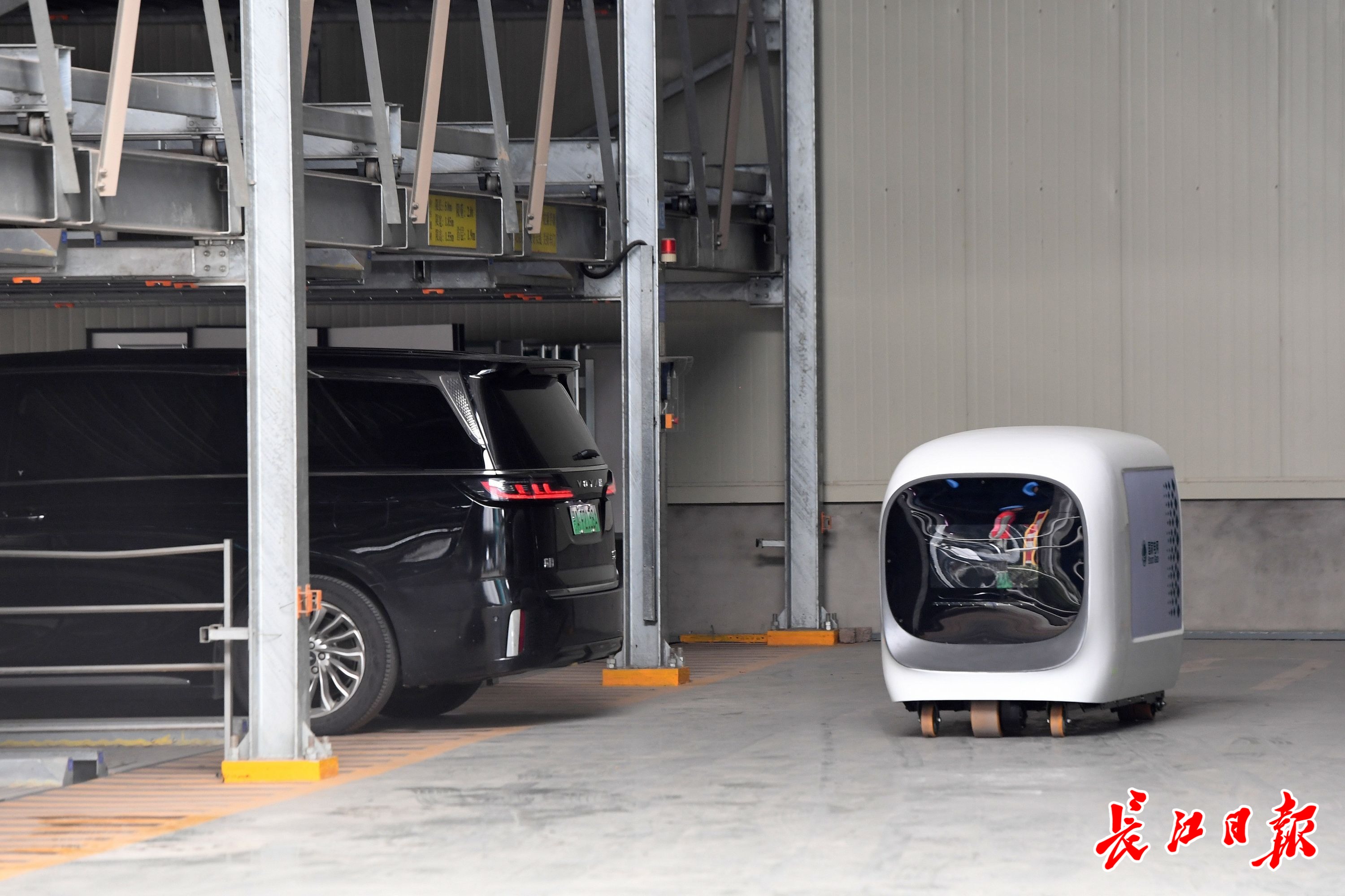 在国网智能充换电综合体,一台酷似列车车头的智能移动充电设备来回移动为车辆充电。长江日报记者周超 摄