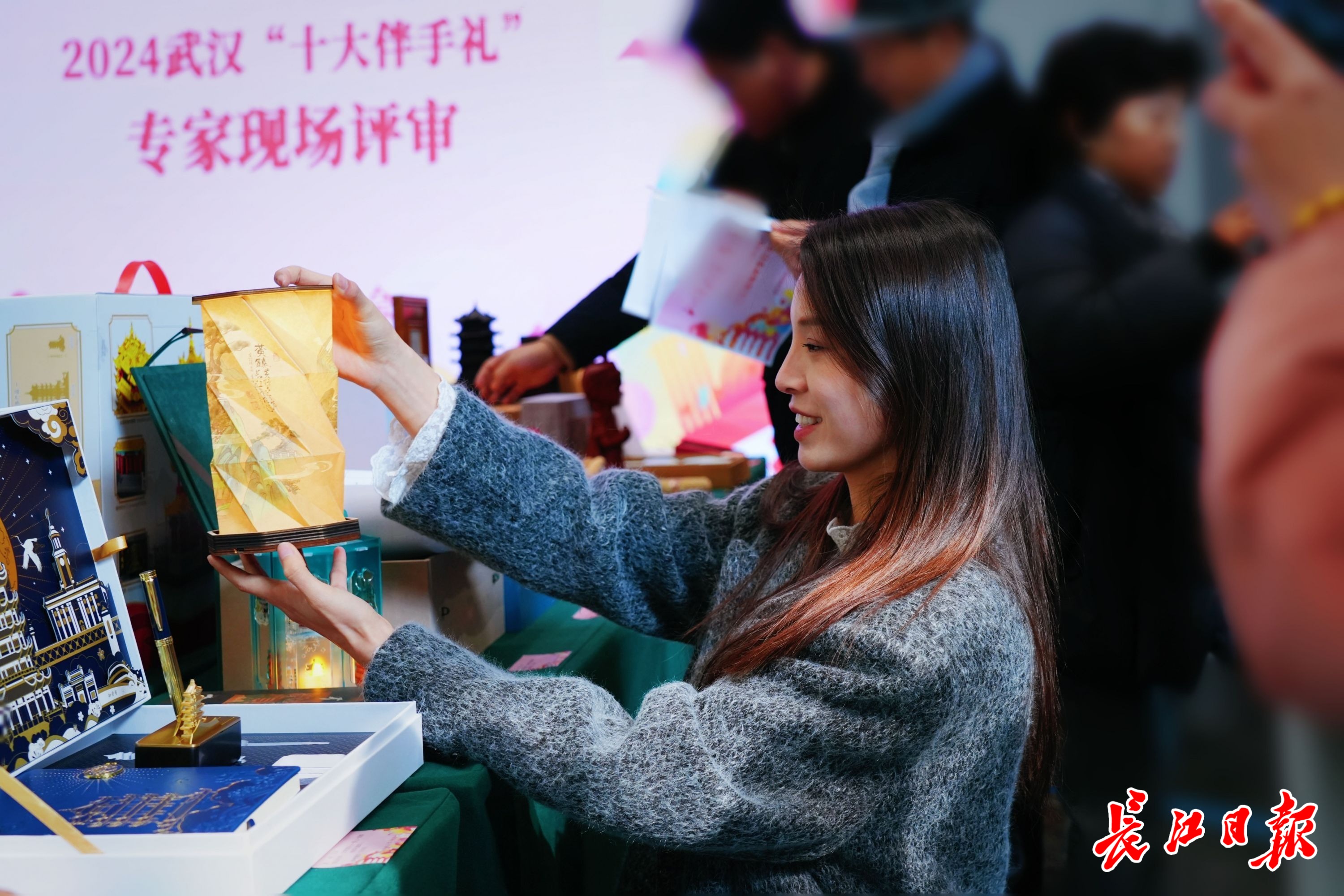 专家评审团正在对现场礼物进行打分。长江日报记者 侯钰倩 摄