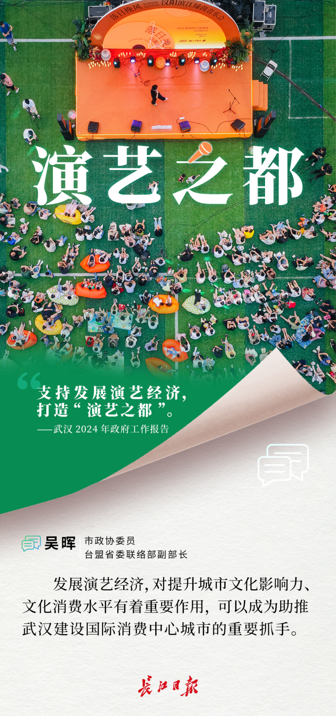 有关武汉,高频高热! ©原创 2024-01-21 17:42 0 在今年的武汉两会上,政府工作报告中的一系列热词令代表委员们眼前一亮。谈及对这些热词的感受,市人大代表、市政协委员们透露出对于2024年武汉发展的坚定信心和美好期待。 (长江日报出品 策划:陈智 整理:朱晨颖 设计:张莉) 【编辑:商佩】