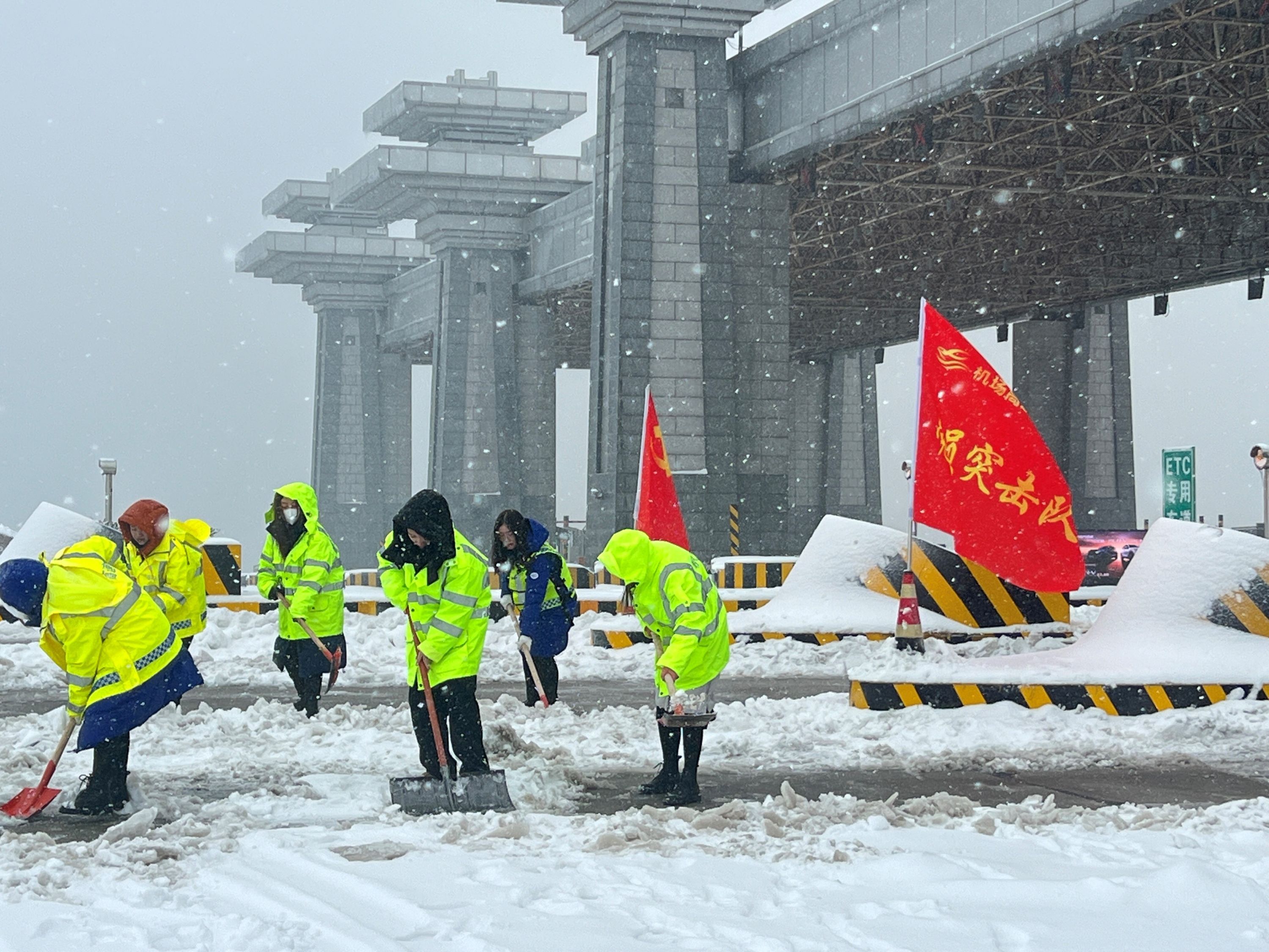 武汉城发集团所属交投机场高速公司党员干部职工扫雪清障。