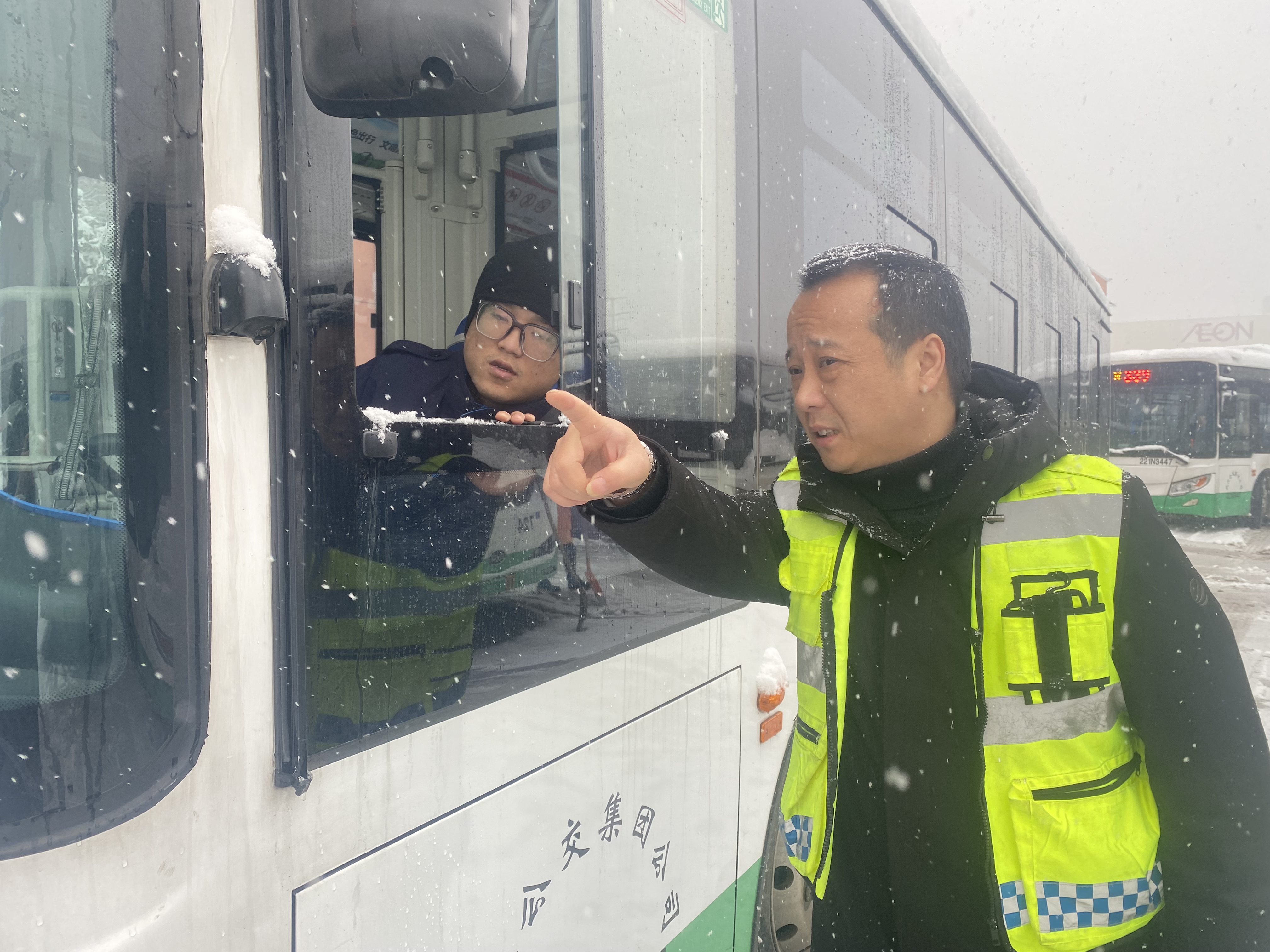安全保障方面,袁建明称,为确保车辆在冰雪天气中性能稳定,各线路工作人员每天会提前一两个小时到岗,做好出车前的车辆例检工作,杜绝车辆“带病”上路。这些工作除了包括对车辆轮胎、雨刮、防冻液、制动系统、灯光等关键设施设备进行检修,还包括提前开启暖风、在公交车上下门台阶处铺设防滑草垫、在公交站台、场站候车区撒盐融雪等。