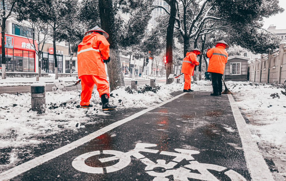为了让居民在清晨能够正常出行,这支“铲雪大军”凌晨4点就已全部就位投入工作,在零下3摄氏度的室外一直工作到天亮。“夜里出来的时候觉得很冷,可扫着扫着身子就热起来了,这会儿都出汗了。”环卫工人高爱珍说。