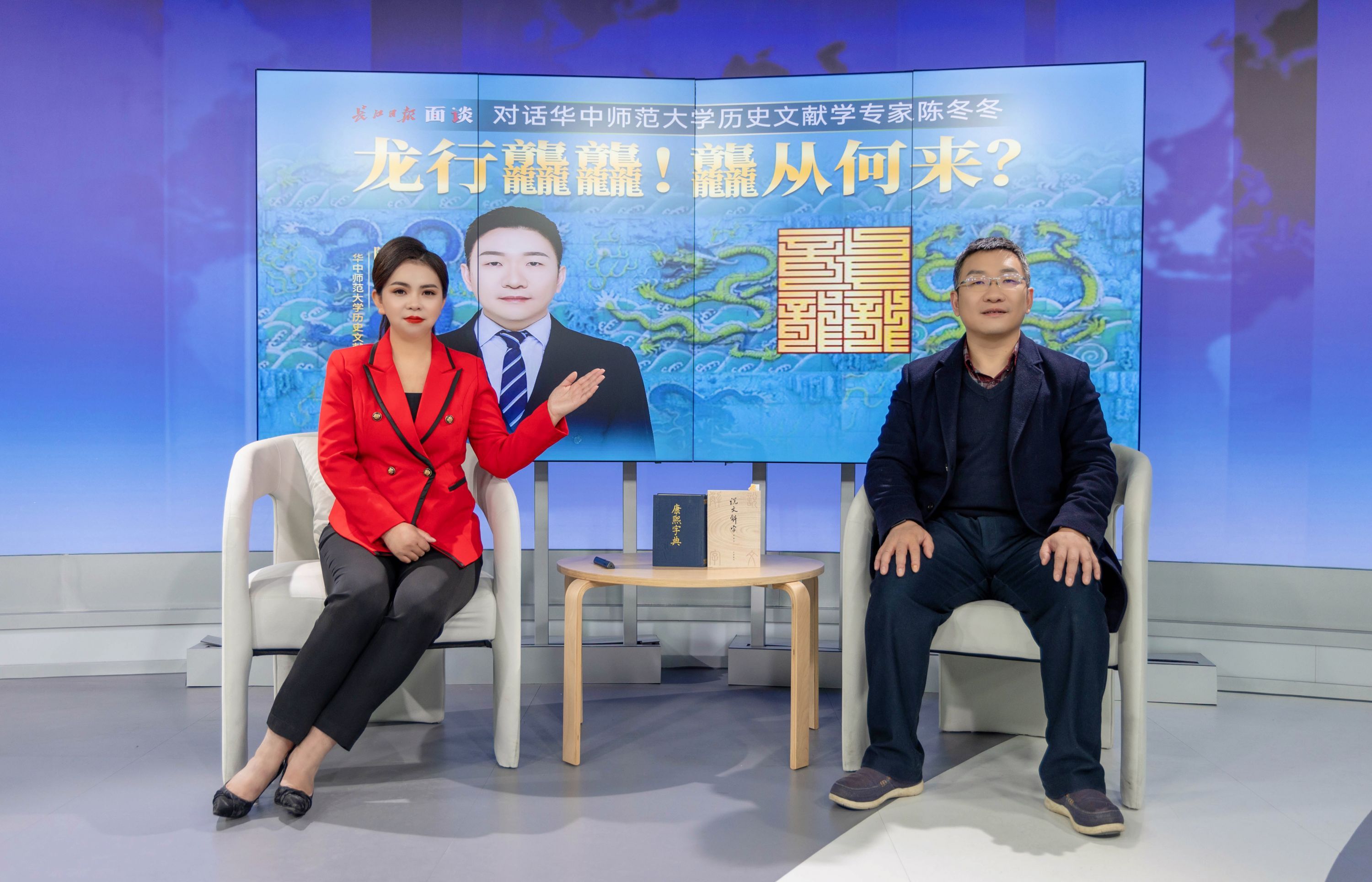 近日,中央广播电视总台《2024年春节联欢晚会》备受关注。本次春晚以“龙行龘龘(龘,读dá、音沓),欣欣家国”为主题。词语“龘龘”是什么意思?有什么字面背后的意义?华中师范大学历史文化学院陈冬冬副教授做客《面谈》,为大家解读文献中的“龘”字。