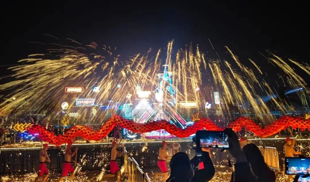 襄阳华侨城奇幻度假区非遗打铁花“火龙钢花”