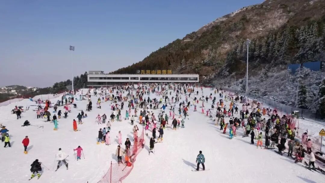 游客在九宫山滑雪场感受速度与激情