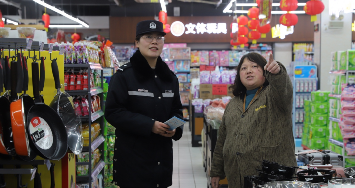 “过年好呀,上次说维修的监控探头修好了吗?春节期间安全可不能松懈,注意防火防盗防诈骗。”大年三十,光谷社区民警李梦琪来到关南社区超市,再次排查安全隐患。