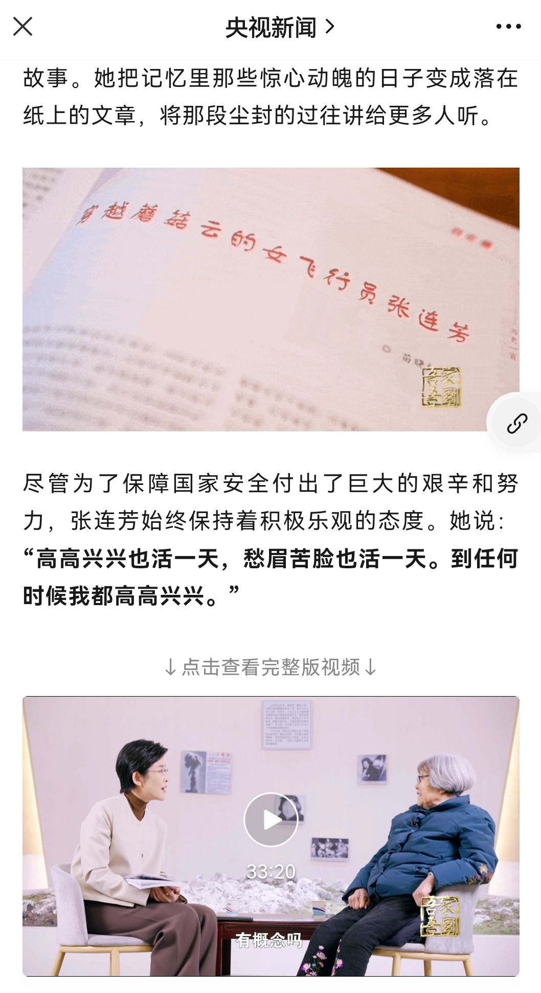 长江日报大武汉客户端2月20日讯(记者刘睿彻)两度追逐蘑菇云建奇功,19日获悉,长江日报曾三次报道的新中国第二代女飞行员张连芳引来央视、人民日报关注,以张连芳为代表的新中国建设者为国家强大无私奉献的精神再度引发感动。