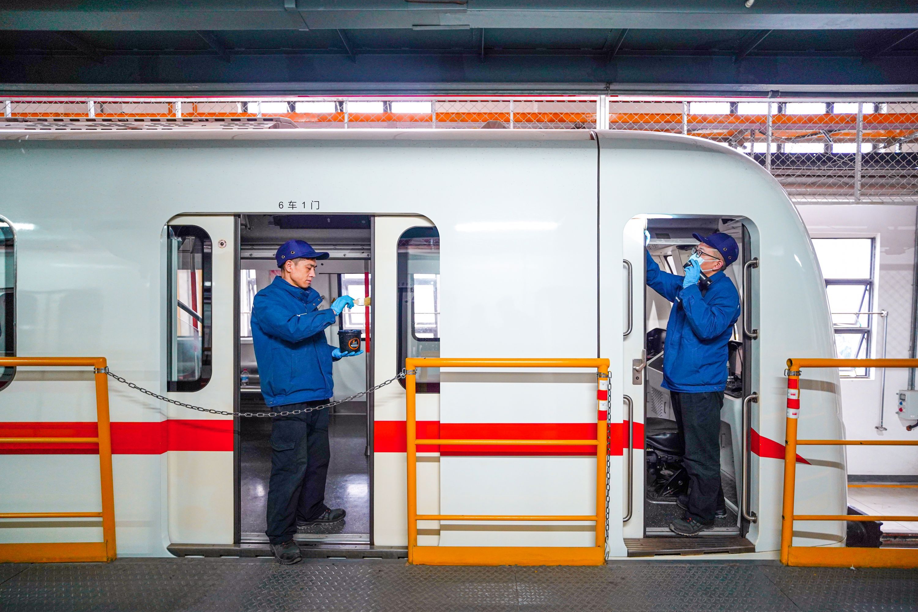 地铁技术人员检查确认密封胶条状态良好并涂抹防冻油。通讯员方正阳 摄