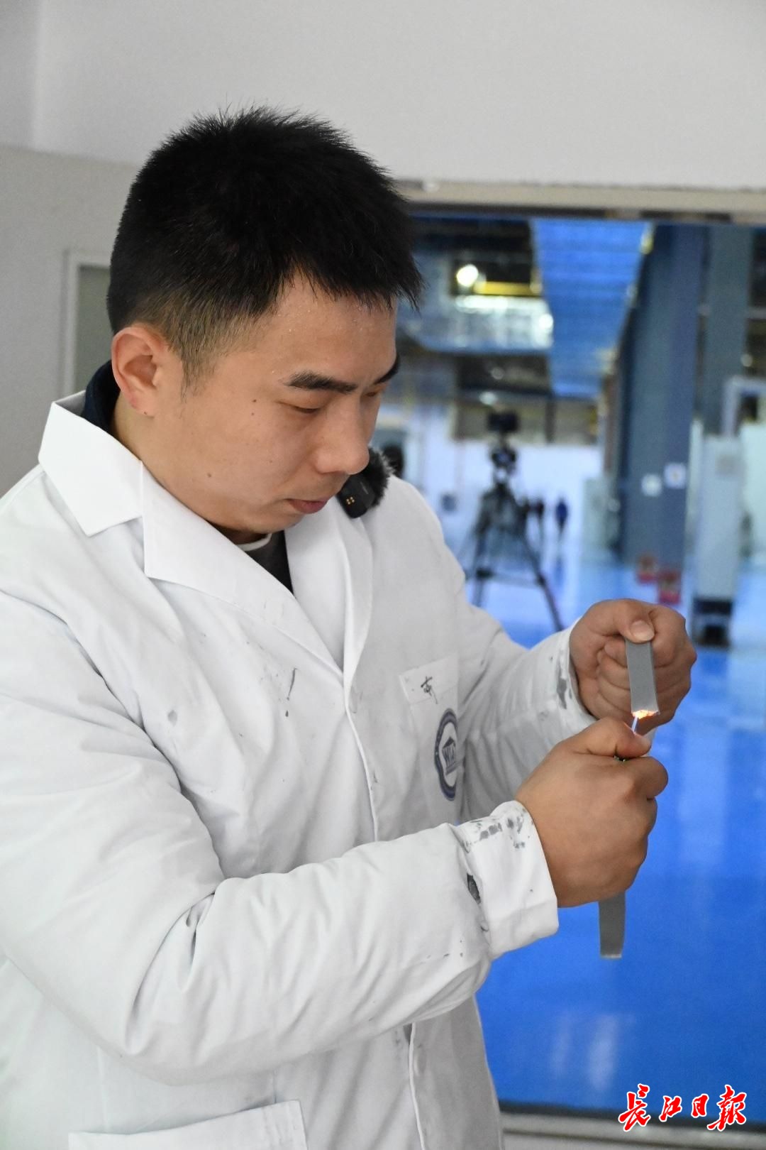 王东用打火机去烧他手中的有机硅泡棉,只见火苗在点燃瞬间就熄灭。他介绍:“有机硅材料耐高温、稳定性好、电绝缘性能强,是我们研究的重点材料之一。有机硅泡棉主要应用在新能源汽车领域,也可以用于高铁悬浮地板支持和减震、5G信号塔等仪器仪表密封等。”