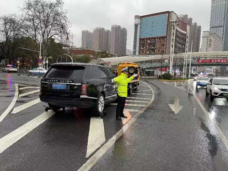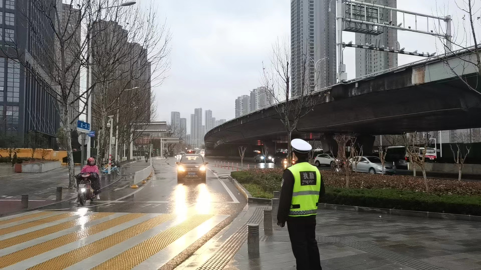 武汉交警早高峰值守路面。通讯员杜泽文摄