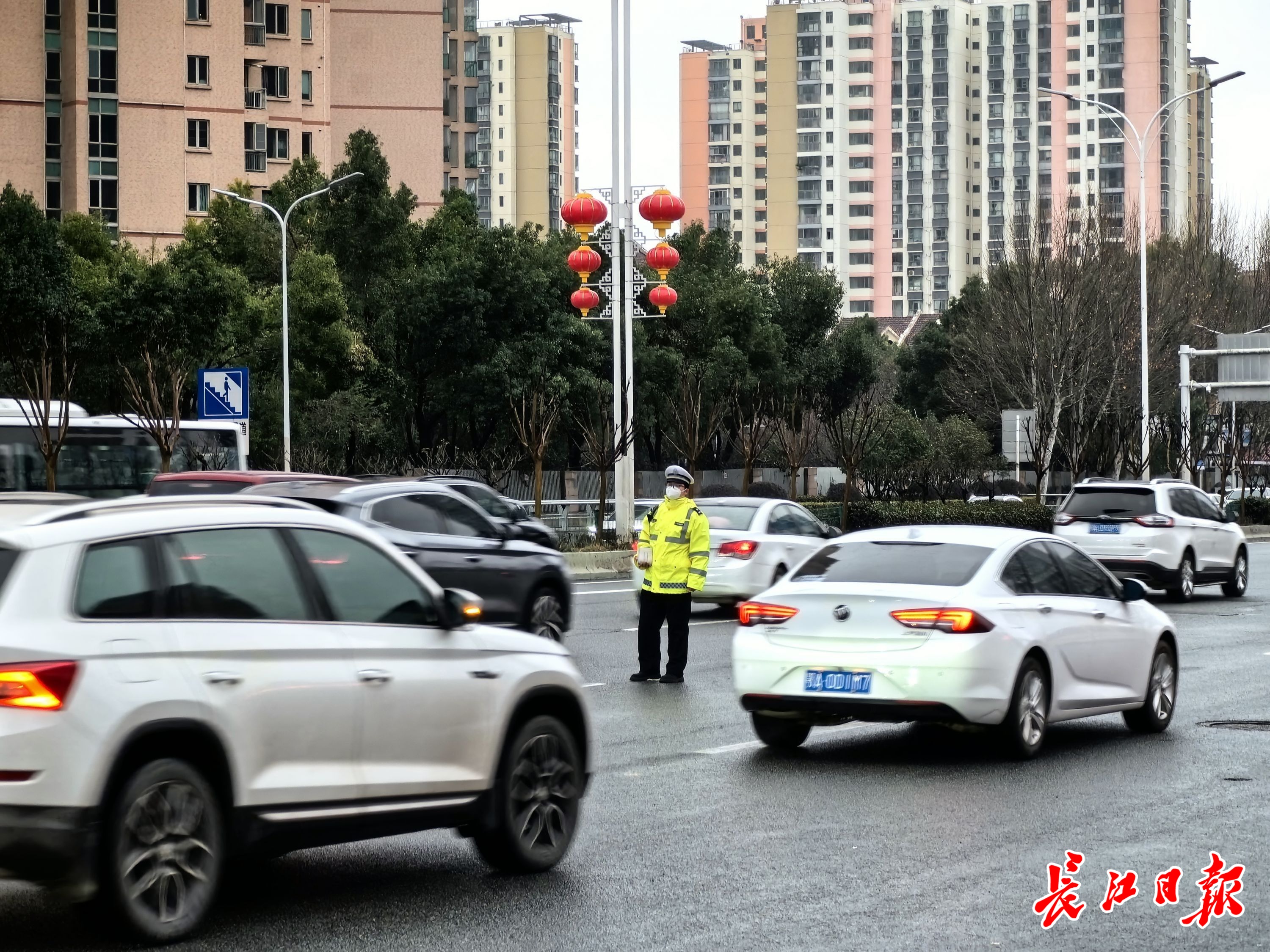武汉交警早高峰值守路面。通讯员杜泽文 摄