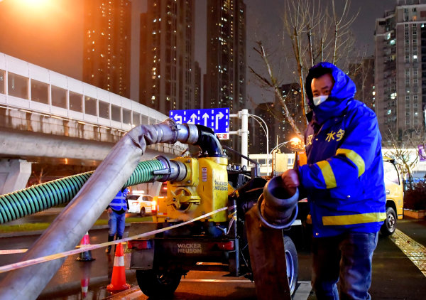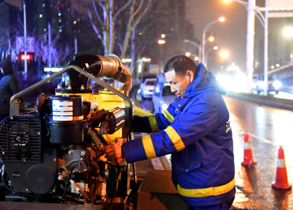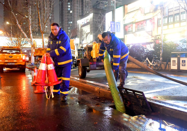 自19日深夜投入排涝工作,杨志丹和作业人员已连续工作近24小时。他告诉记者,20日凌晨强降雨,大家奋力排渍,不顾冰冷雨水浸湿衣衫。“雨不大时,大家就在工程车上休息一下;雨下大了,随时投入‘战斗’,我们将坚持值守,直到这轮低温雨雪天气结束。”
