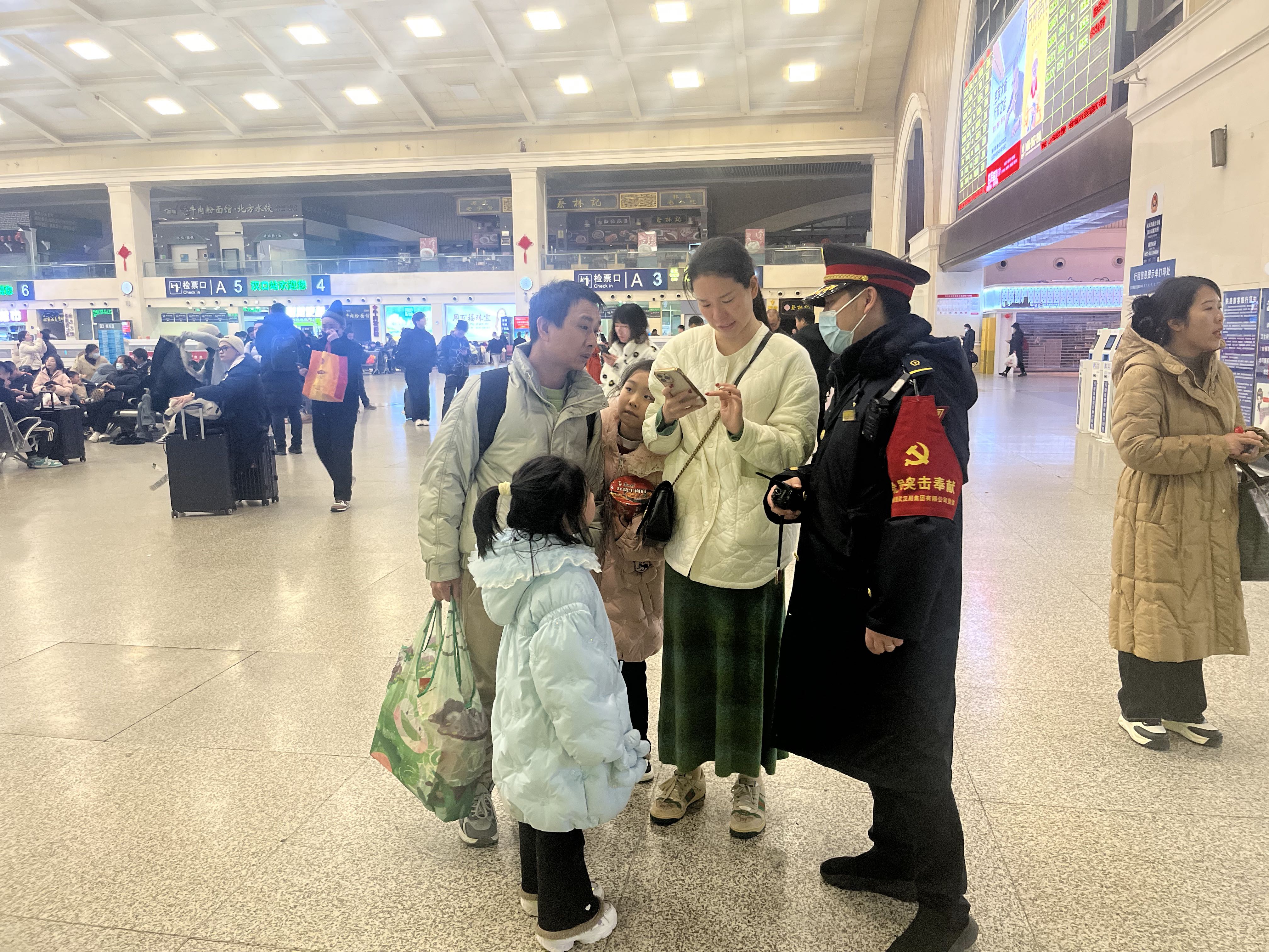 廖世有一边联系站台同事,一边拿过手机帮忙退票,不到一分钟,张女士一家也顺利乘坐另一班火车前往宜昌东。
