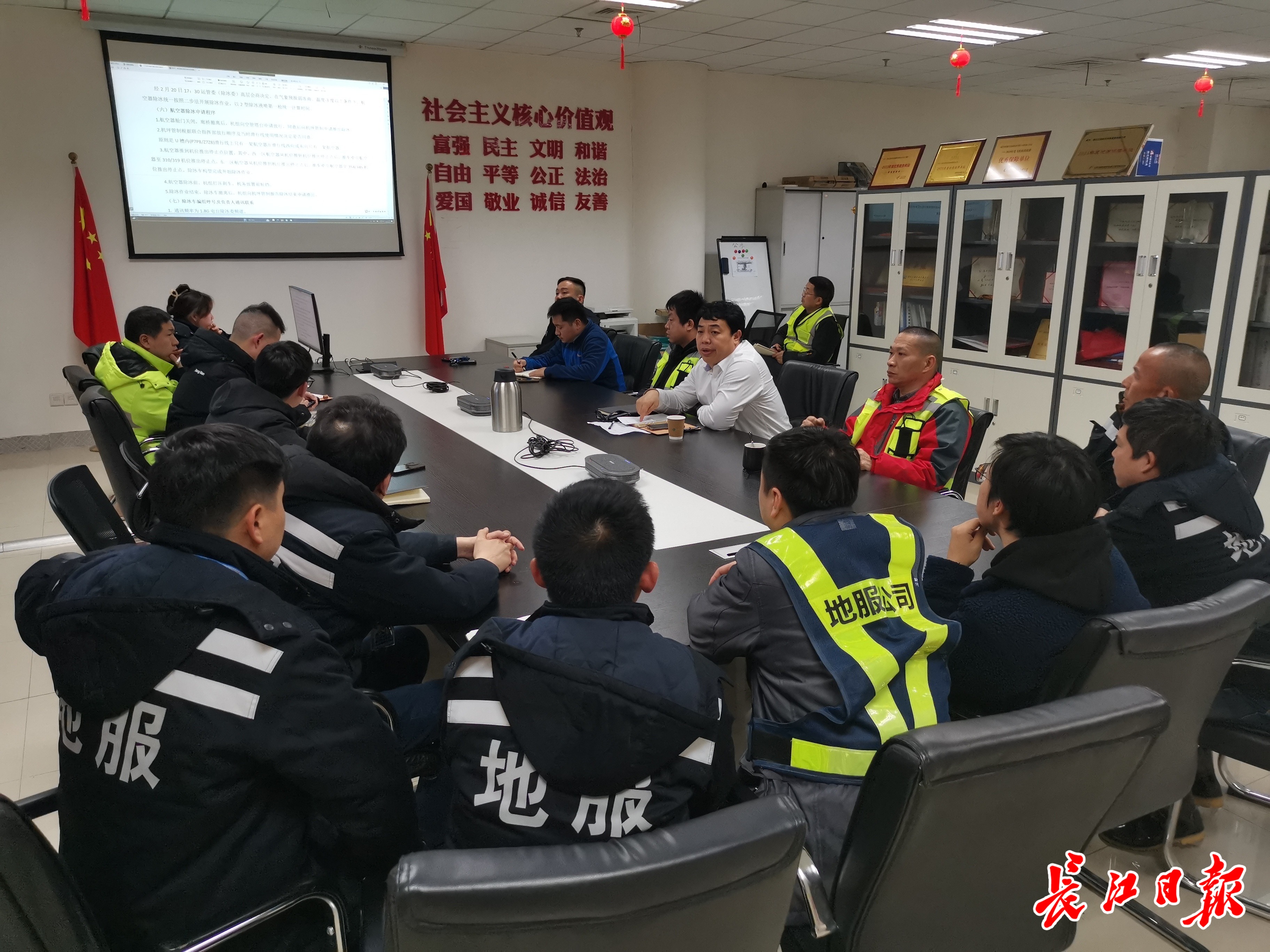 长江日报大武汉客户端2月21日讯 “大家明天凌晨4点到达各自岗位,4点半开始对航空器预除冰,确保早上始发8架飞机准点出港。”20日晚9点,武汉天河机场有限责任公司地面服务保障部机务工程室会议室,负责人马家文正在做21日凌晨除冰部署。