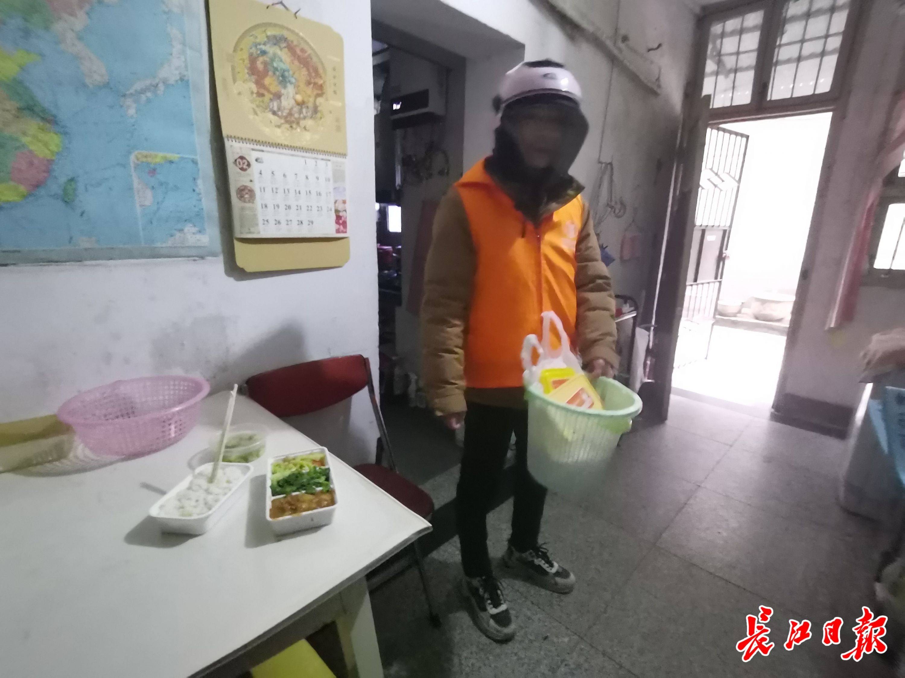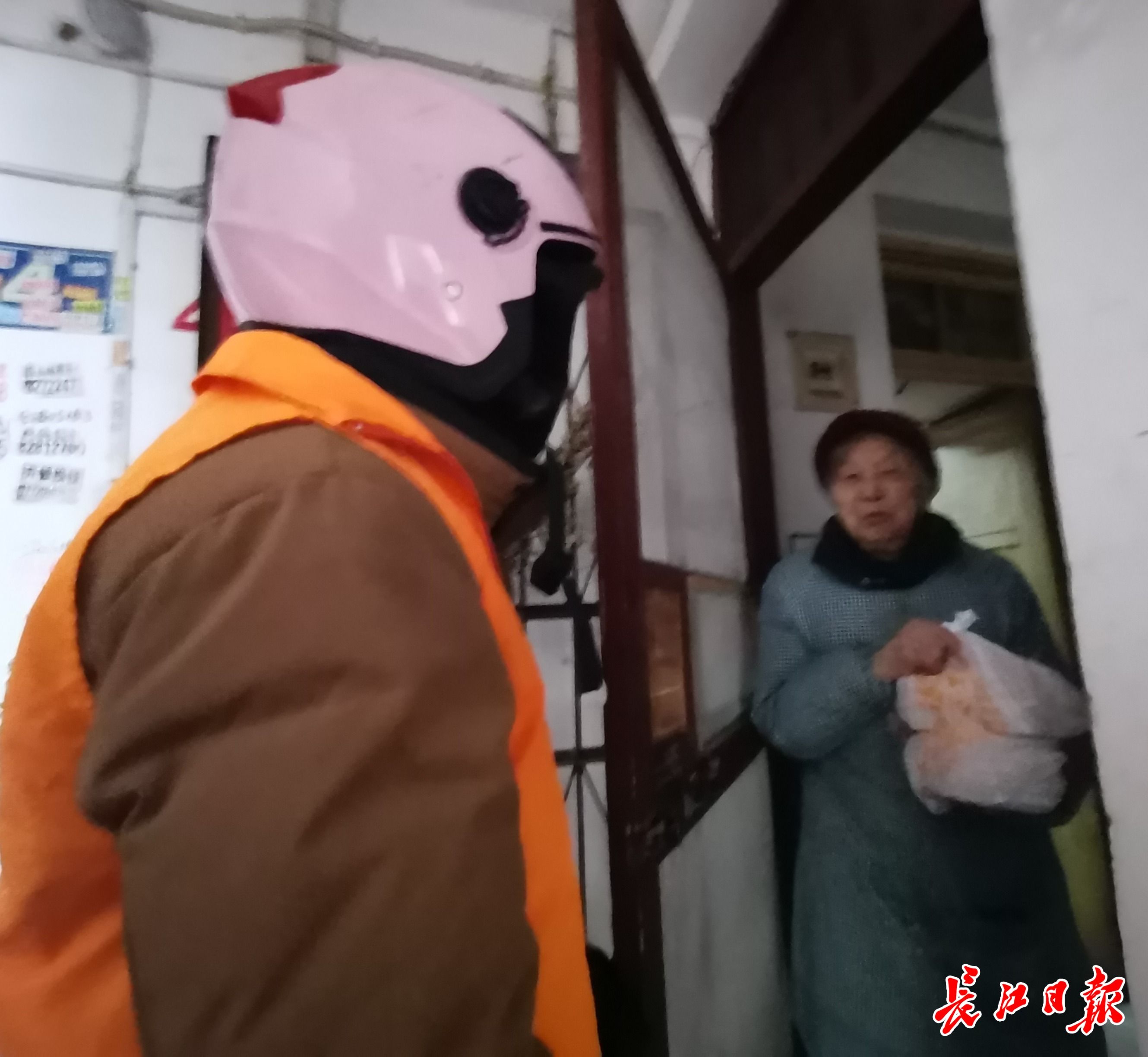 长江日报大武汉客户端2月21日讯(记者万凌)“江爷爷,饭来了!”21日中午11时半,家住江岸区华清园小区的江爷爷听到熟悉的声音,便颤颤巍巍地起身开门。见站在门外的佰穗养老照护中心送餐员王琼橙色马甲被雨水打湿,老人连忙迎他进屋。王琼笑着说:“饭菜还是热乎的。”
