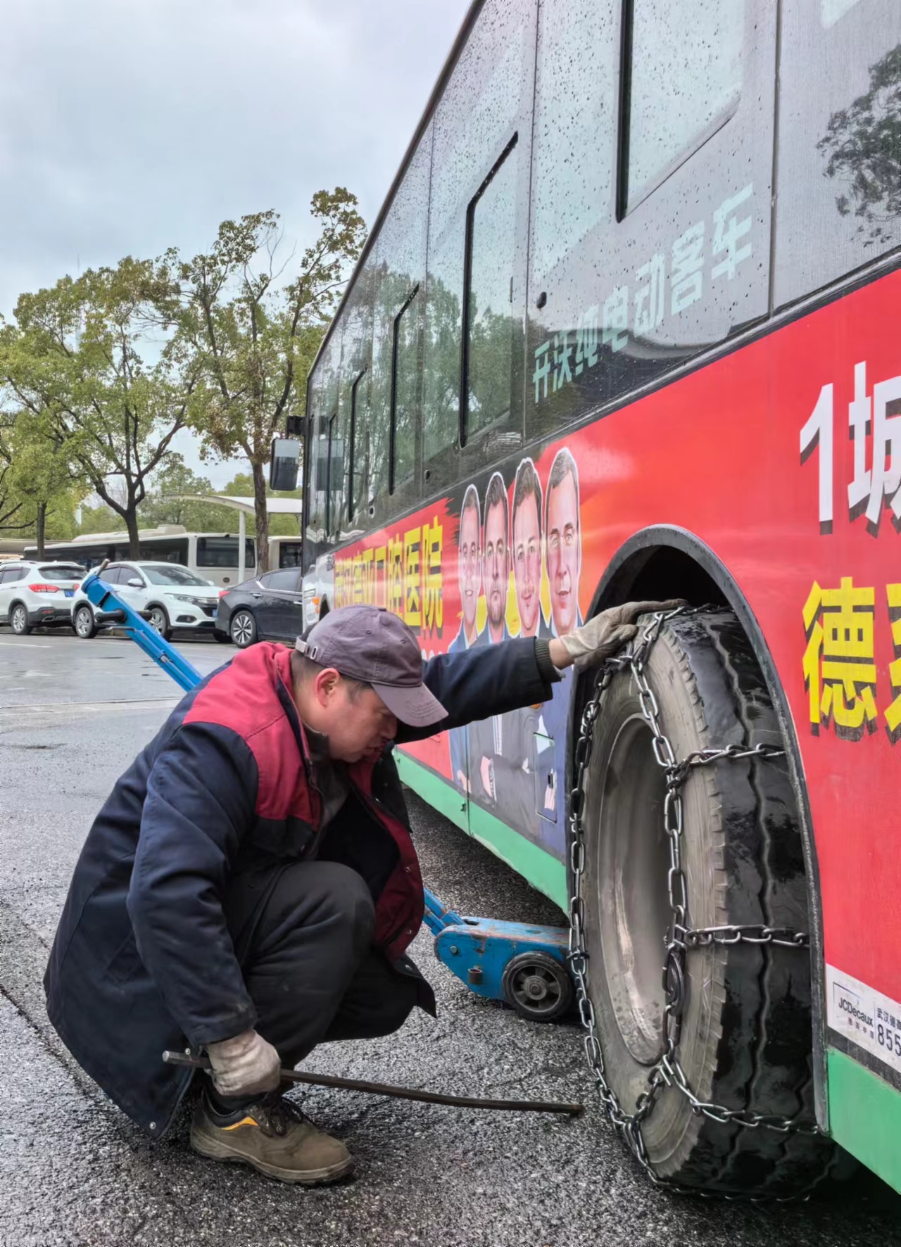 据悉,当天武汉公交集团第二营运公司和第六营运公司共计为20余台公交车完成防滑链的安装工作。