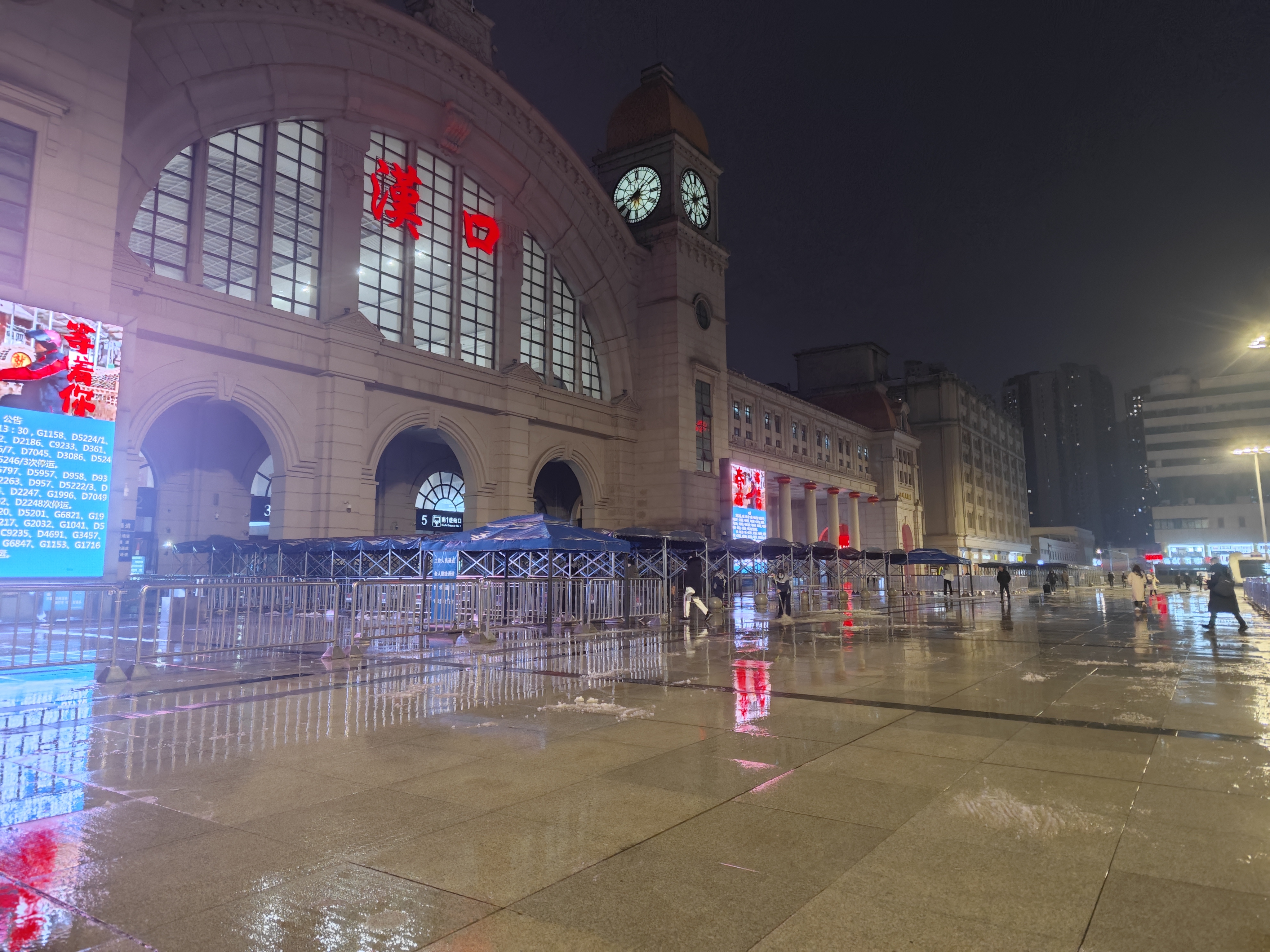 20时,汉口火车站进站口前已无明显冰雪,旅客出行通畅。 见习记者陈星雨 摄