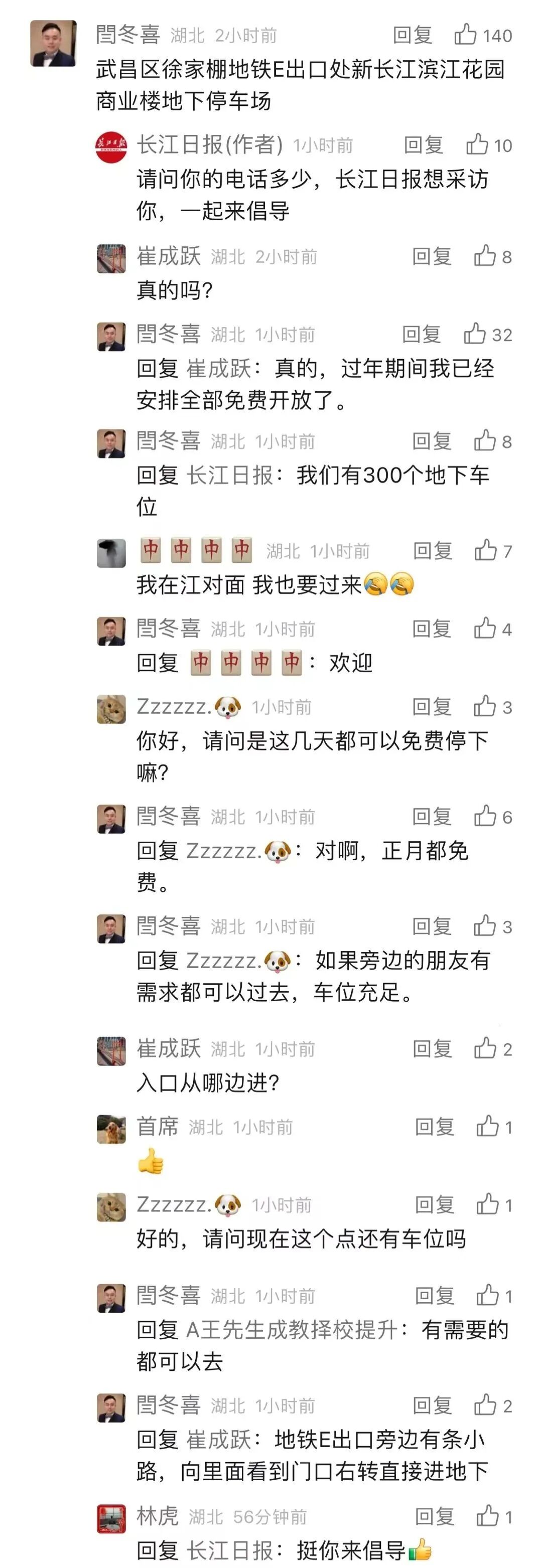 一直与长江日报网友积极互动