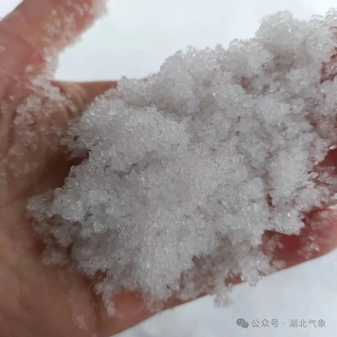 武汉昨天白天出现了冻雨,到傍晚转为霰和冰粒,以冰粒为主。截至今天早晨8时,武汉市区积雪深度达到2-5厘米。