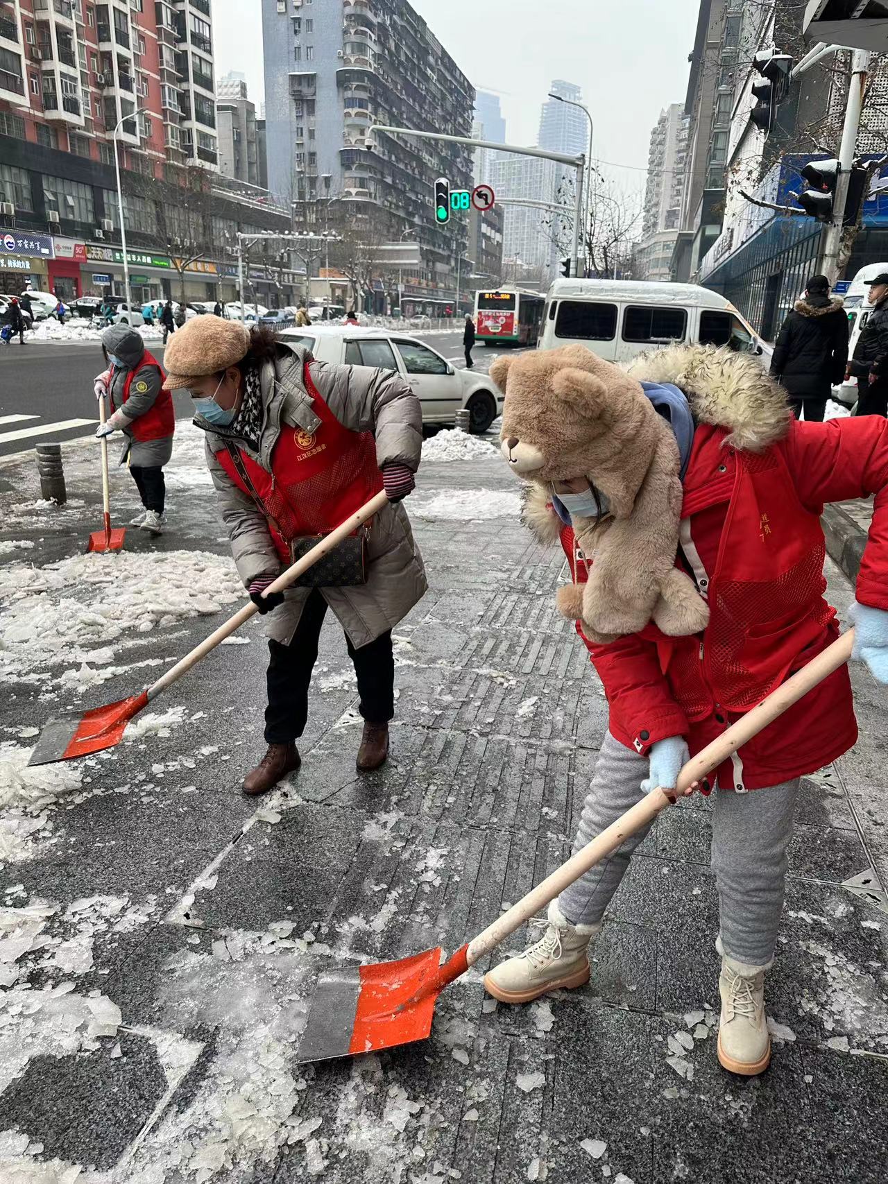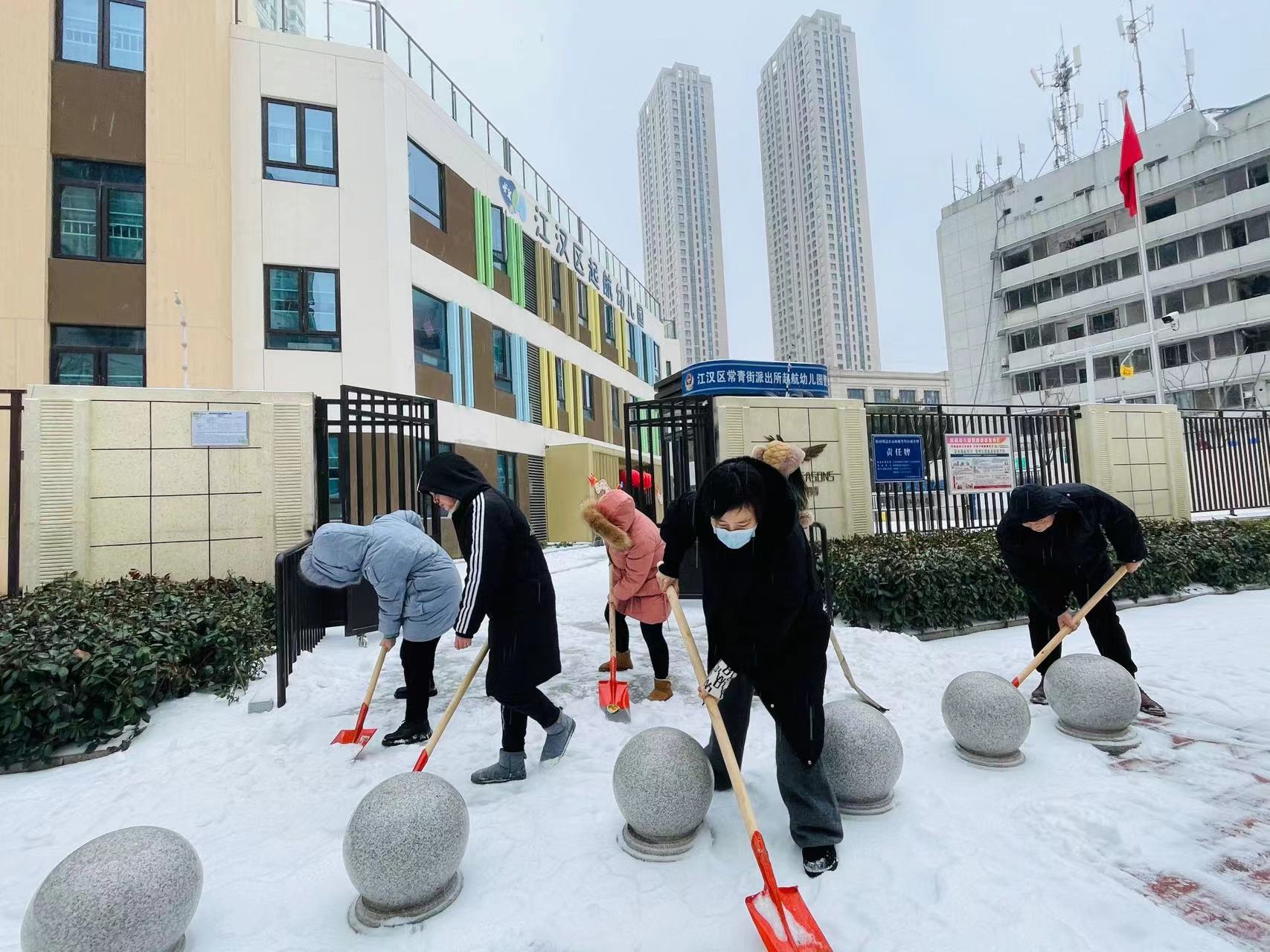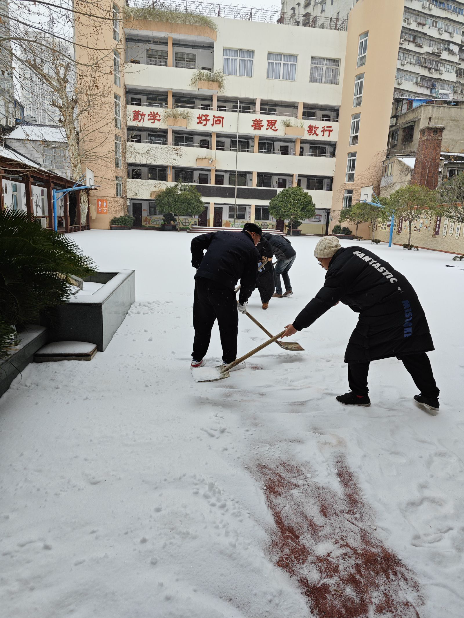 江汉区稚雅幼儿园、盛世红苗幼儿园、稚美幼儿园、童趣幼儿园、起航幼儿园、新稚雅幼儿园等园所教师也在风雪中协助社区铲雪,保障幼儿园门口人行道、车行道的畅通。