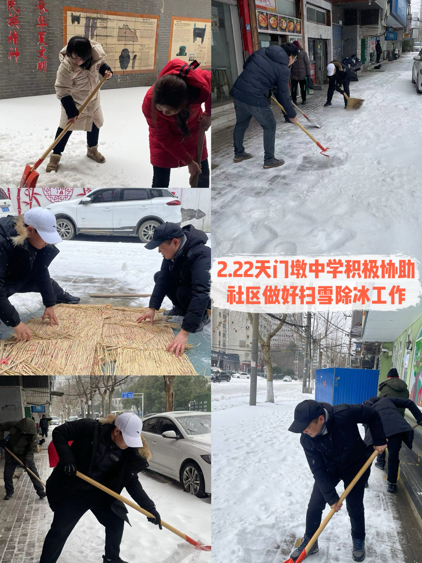 长江日报大武汉客户端2月22日讯(记者刘嘉 通讯员陈诗灵)“请各校注意出行安全,积极应对新一轮低温雨雪冰冻天气,开展房屋安全隐患排查,切实做好校园低温雨雪冰冻灾害防范应对工作。请积极组织动员全体教职工开展‘门前三包’责任区域和校园主要通道的铲雪除冰工作,确保校园及周边通行顺畅安全。”这是22日上午江汉区教育局在工作群里发布的一则通知。当天,该区中小学、幼儿园教师们纷纷行动,铲雪除冰,清理校园门前、周边社区道路。