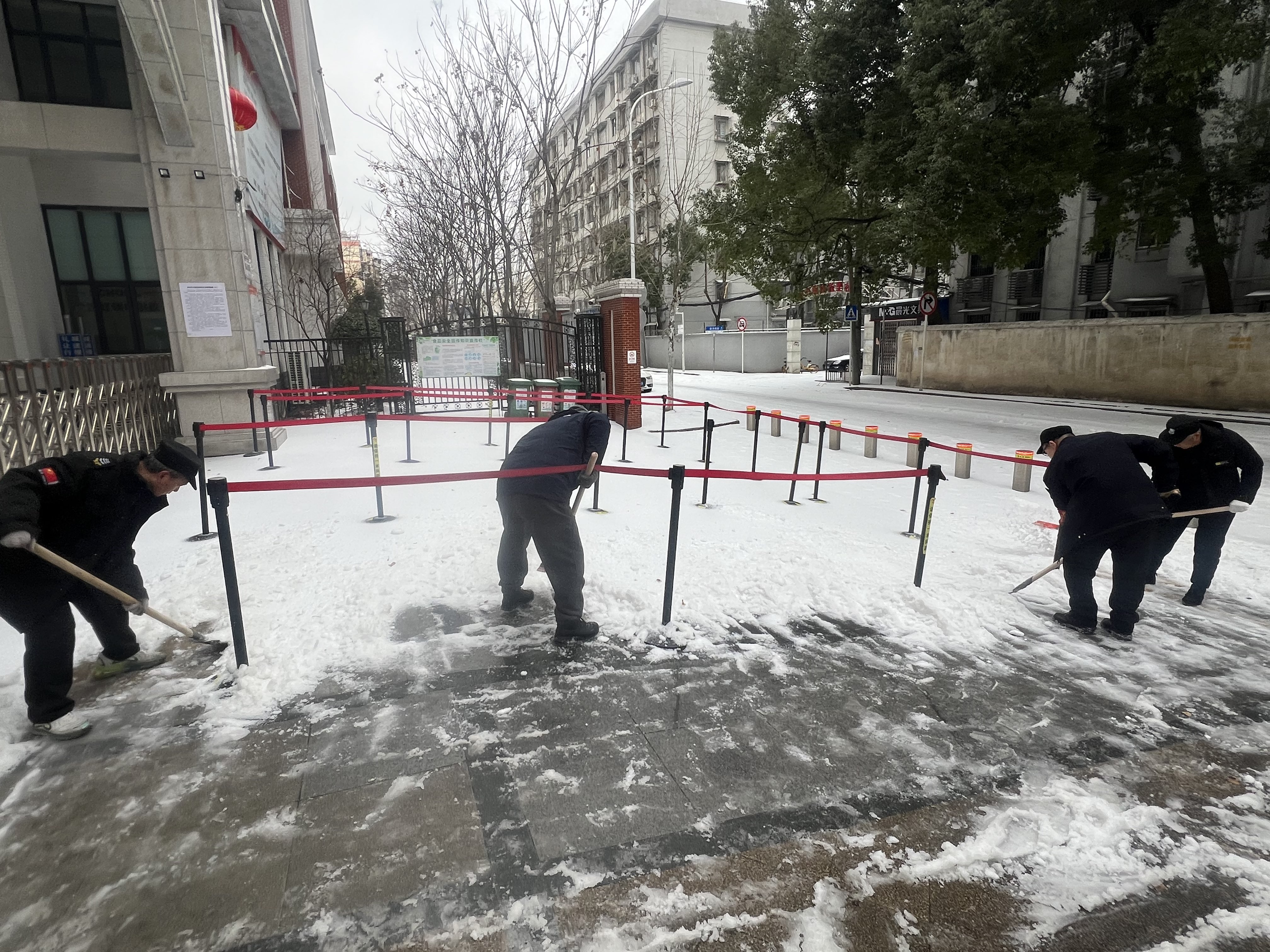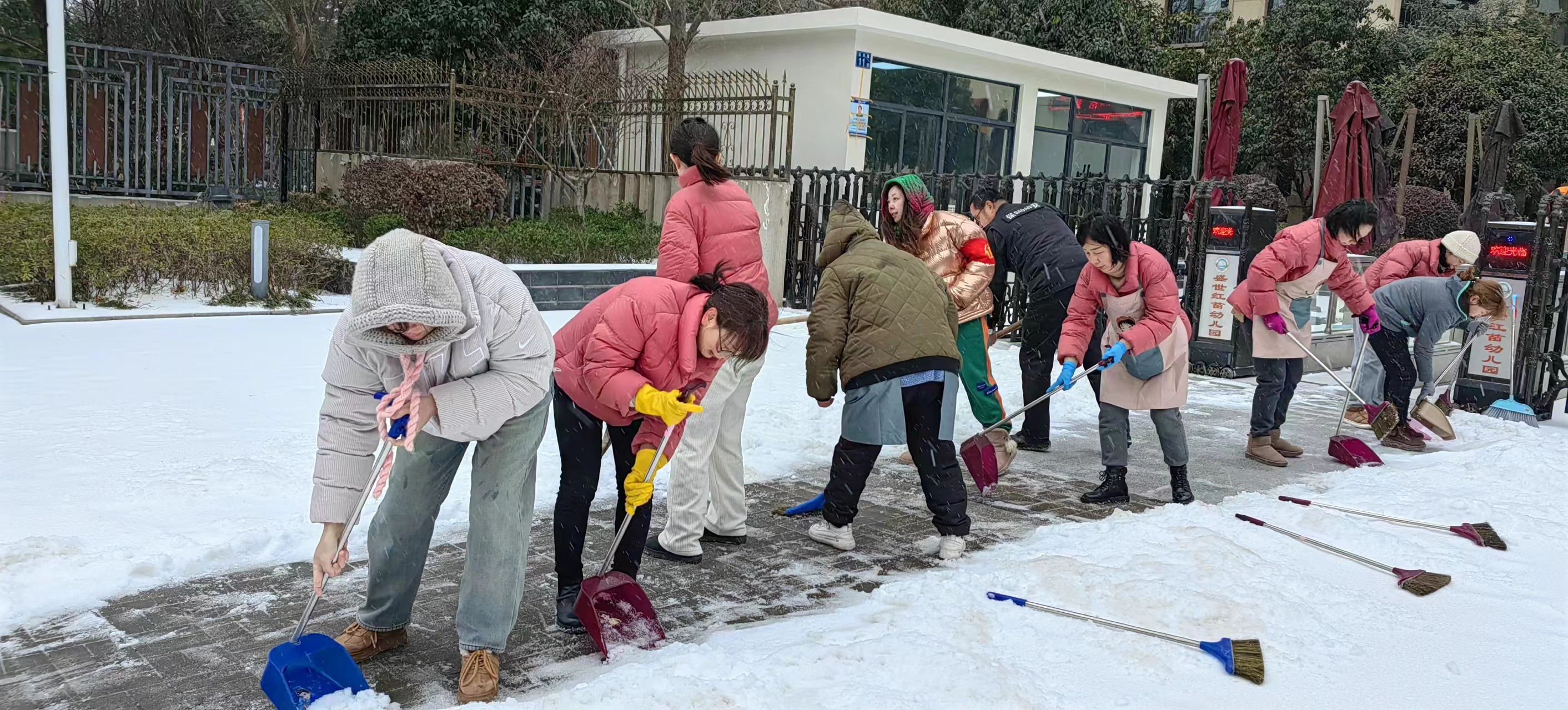 新稚雅幼儿园全体党员及教师志愿者在园所周边铲雪除冰。