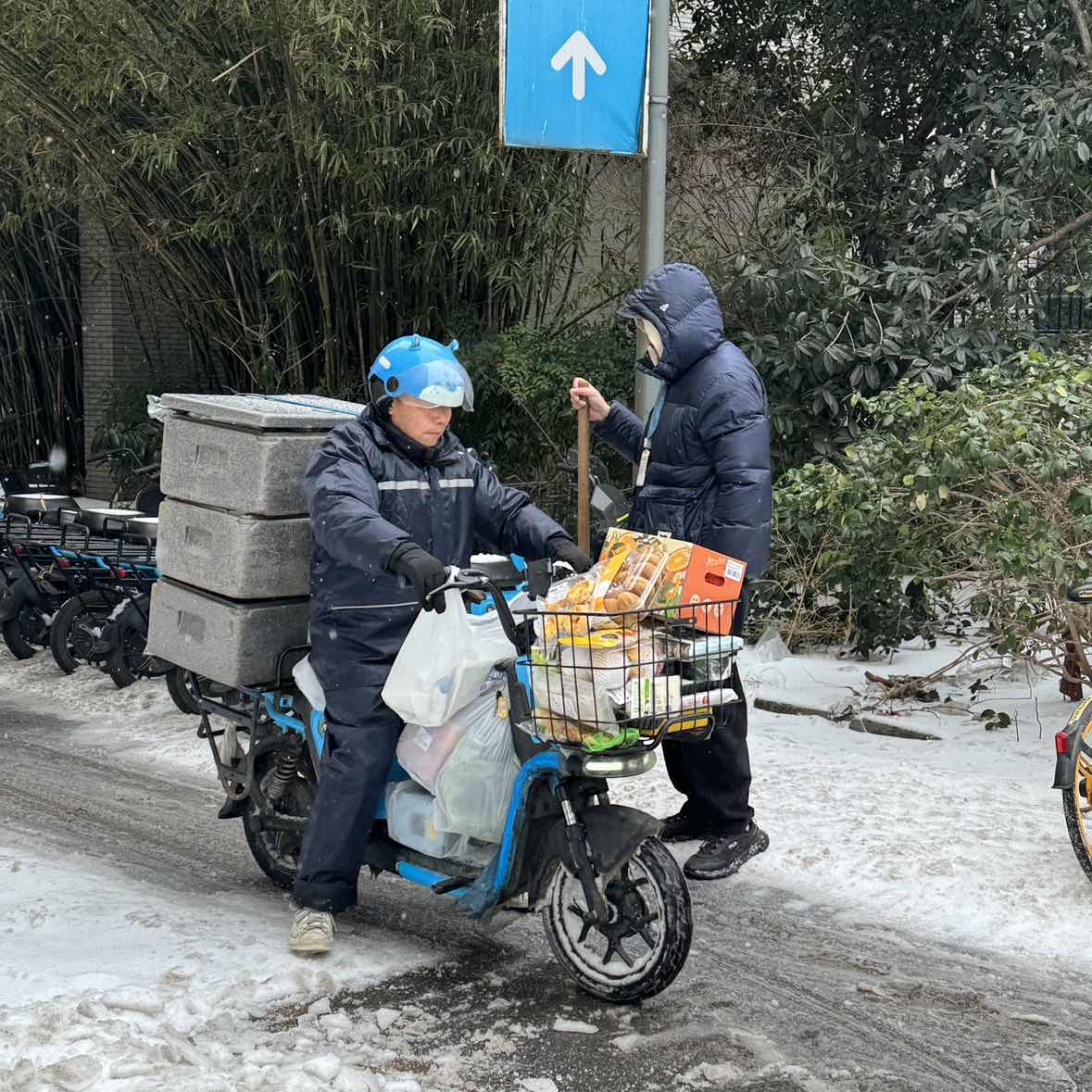 在这样的雪天里,他们的身影成了城市中温暖的风景。他们不仅是外卖骑手,更是这个城市的守护者,用行动温暖着人们的心。