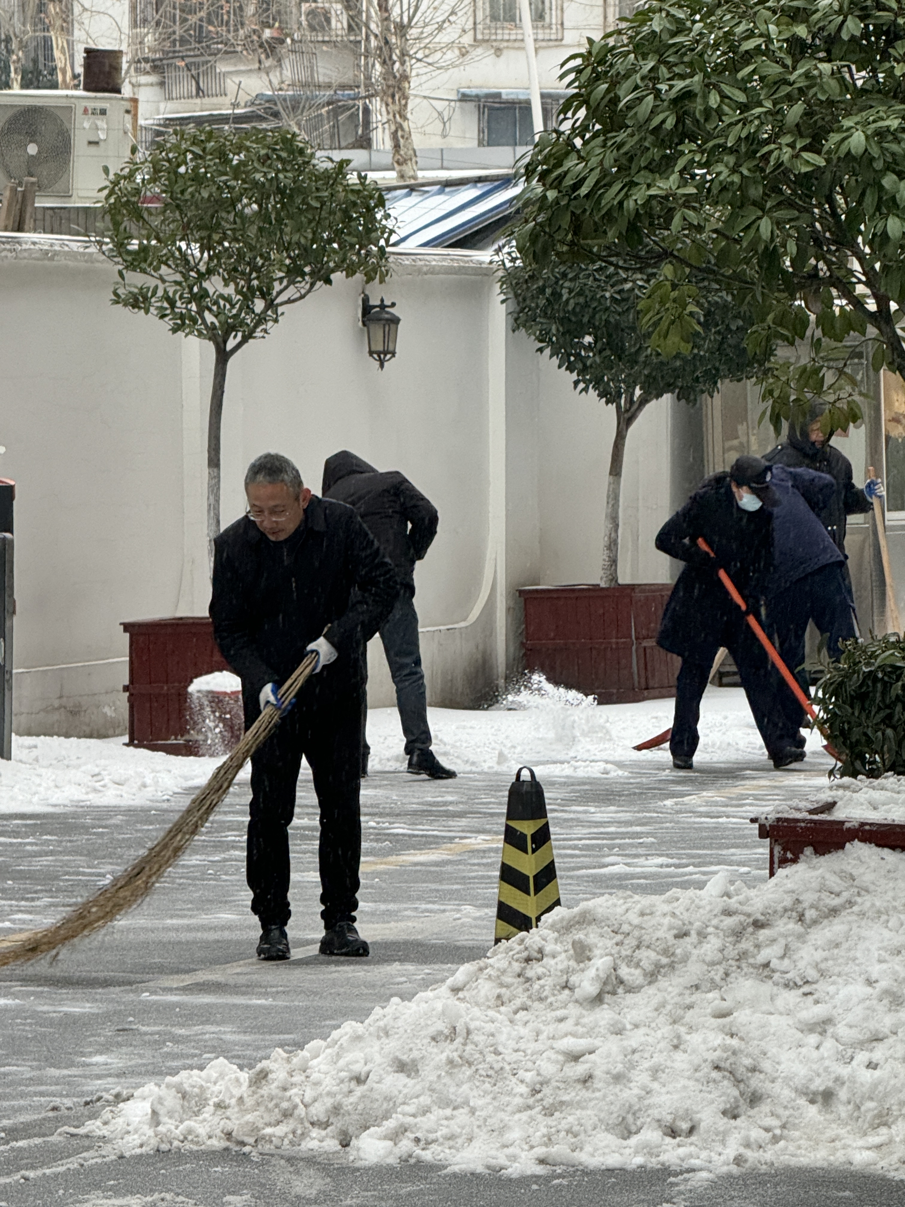 清晨7时许,雪粒不断敲打着地面,综合协调处姜爱斌早早来到局机关大楼,看到几名保洁员、安保人员正在大楼前扫雪,他二话没说,戴上手套、拿起扫帚加入到扫雪工作中。