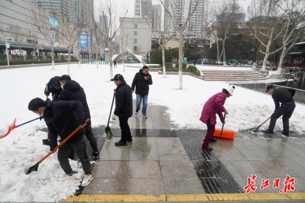铲啊铲,大家一起来铲雪 ©原创 2024-02-22 19:36 0 2月22日下午,降临武汉市的这场雪霰暂时停歇。马路和街道上的积雪成了厚厚的冰壳,踩在上面咯吱作响。记者在中山公园和解放大道周边看到,很多社区和单位为方便市民出行,积极组织人员铲冰除雪。 铲车除雪。 中山公园里工作人员清理积雪。 地铁站门口工作人员清理积雪。 (长江日报记者彭年 摄影报道) 【编辑:邓腊秀】 点击下图查看寒潮应对“一本通” ↓↓↓