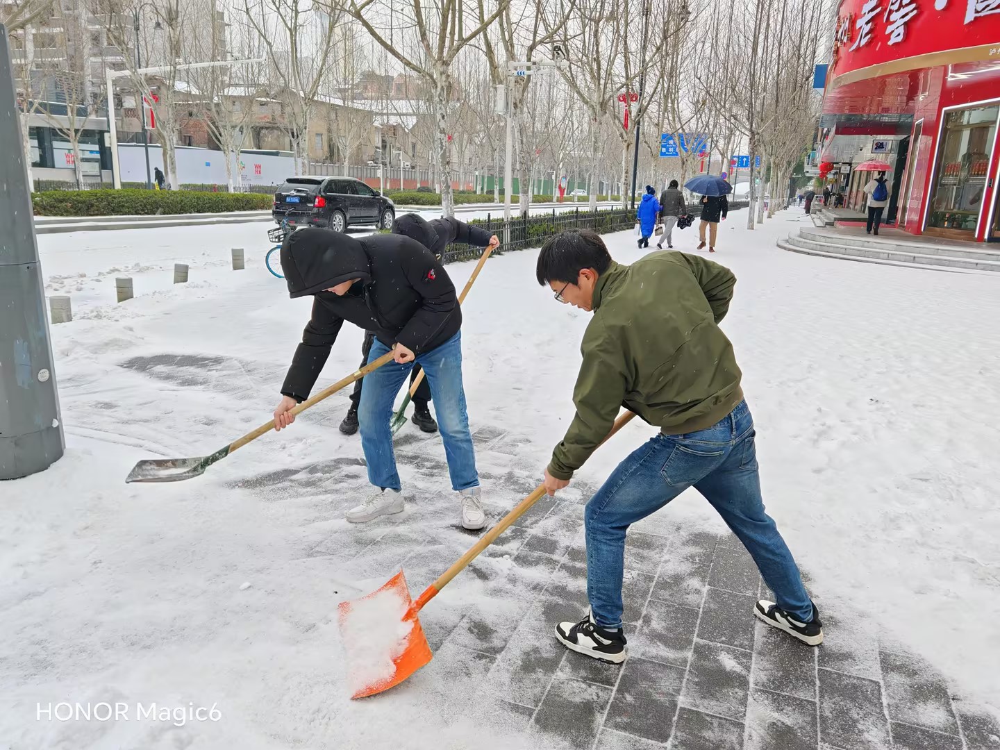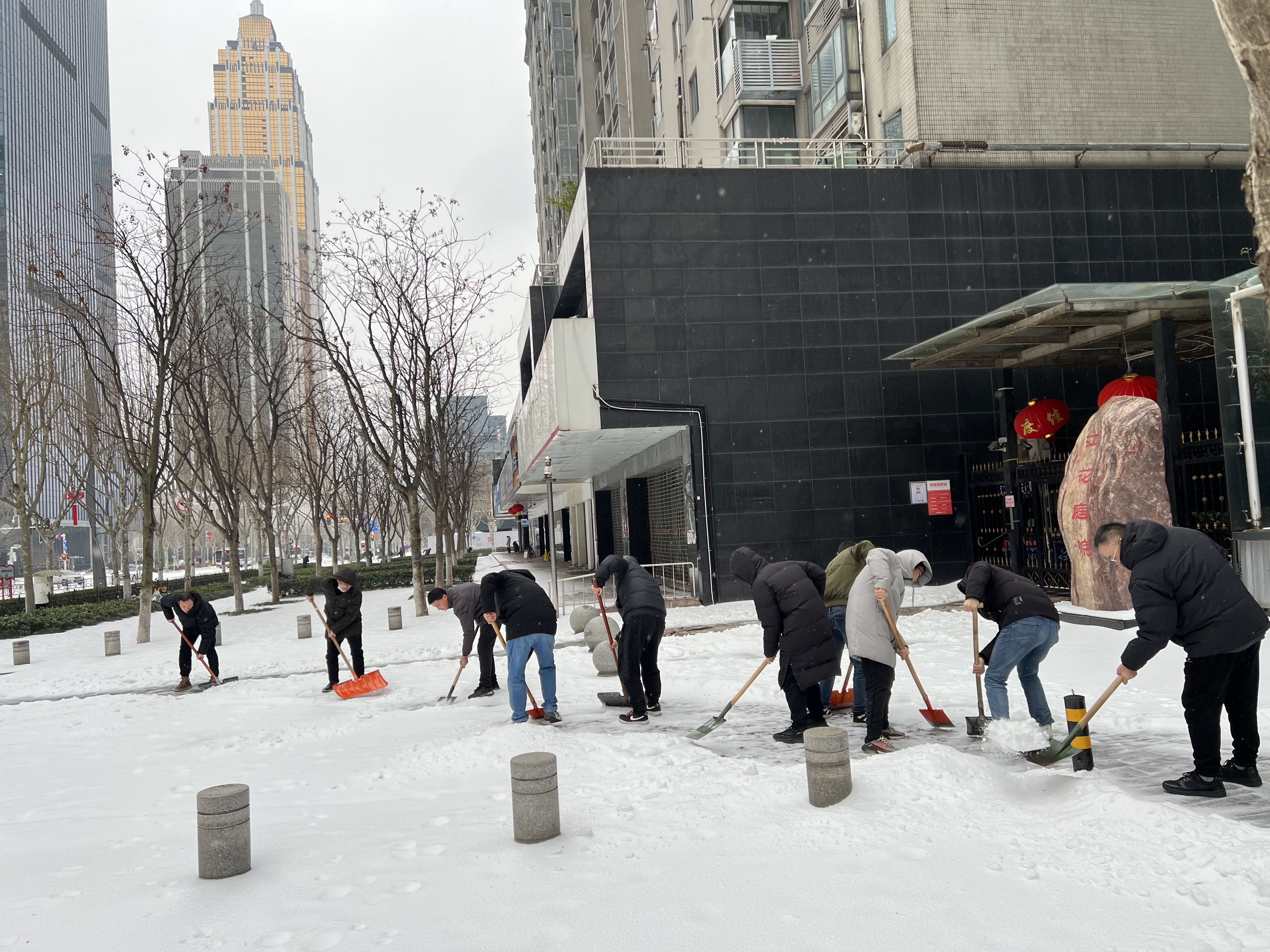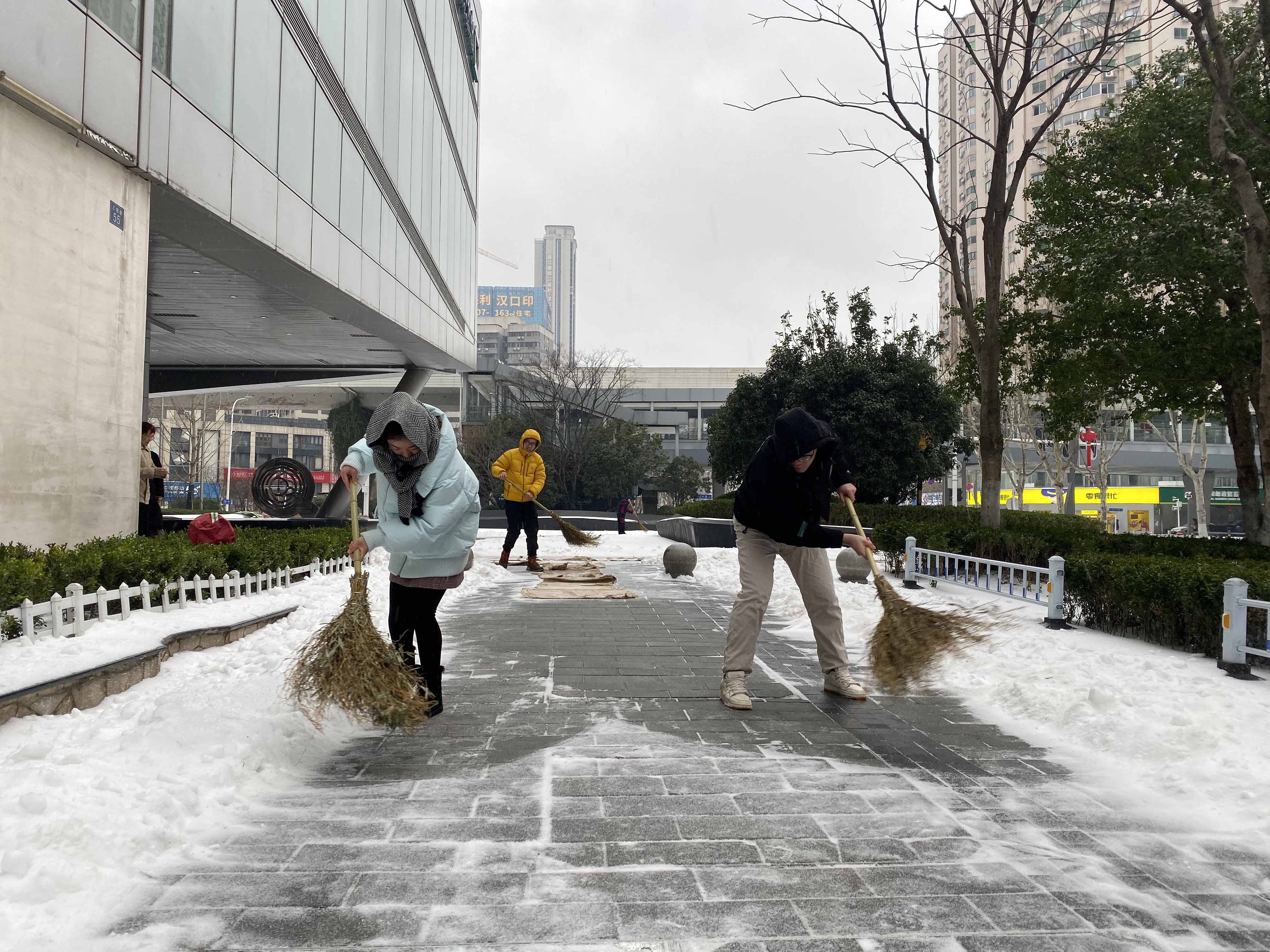 武汉市土地整理储备中心工作人员扫雪除冰。