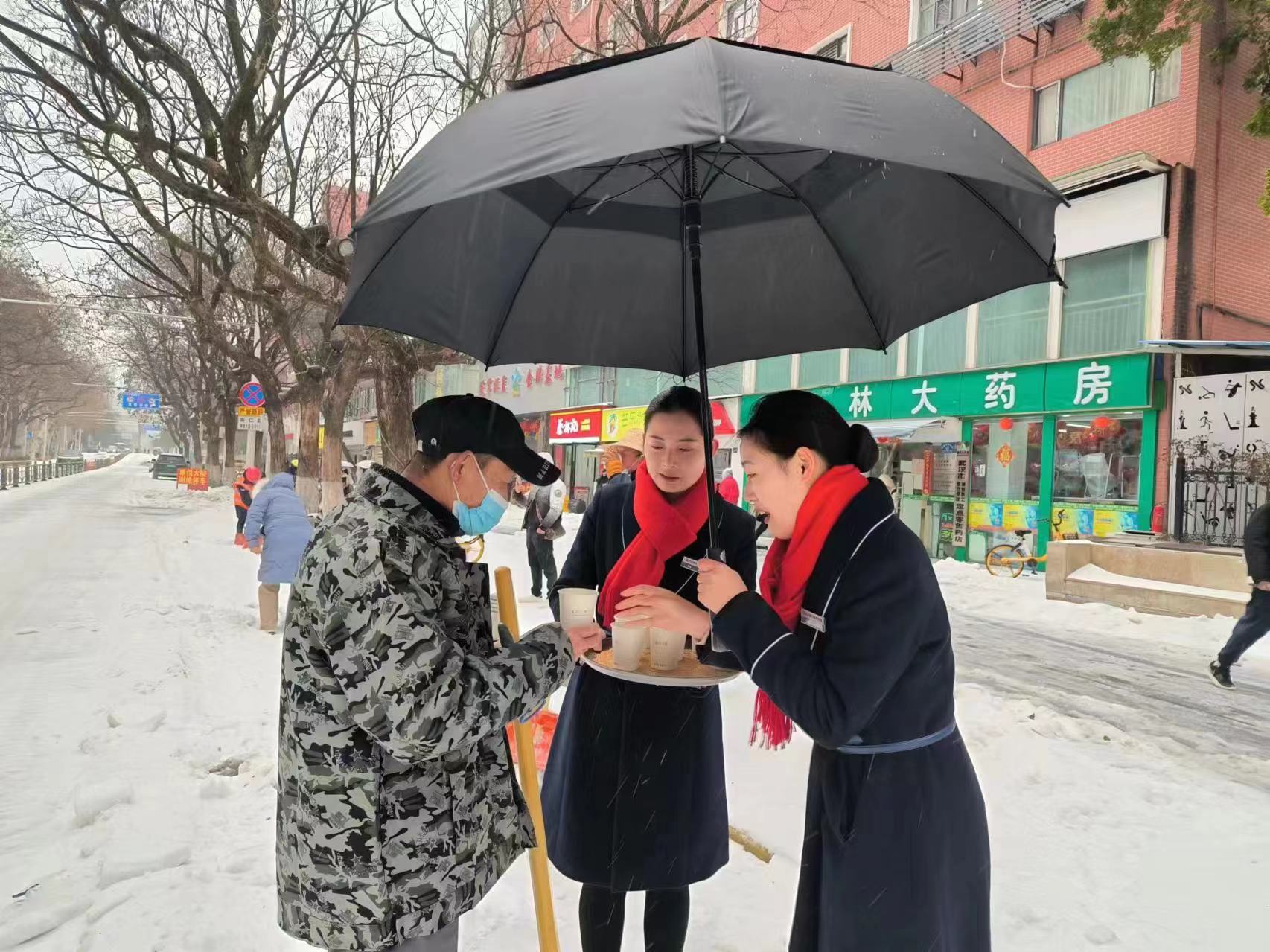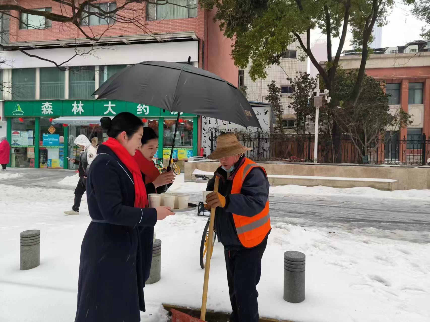 长江日报大武汉客户端2月22日讯 为给持续参加除雪作业的环卫工人、热心市民送上一份温暖,2月22日,位于硚口区荣华街道的武汉城建·天樾项目发起“一杯热茶”暖心行动,为项目周边扫雪的环卫工、志愿者送去免费热茶,并将营销中心设为临时休息区,为所有环卫工人、外卖小哥和志愿者提供一个避风取暖的港湾。
