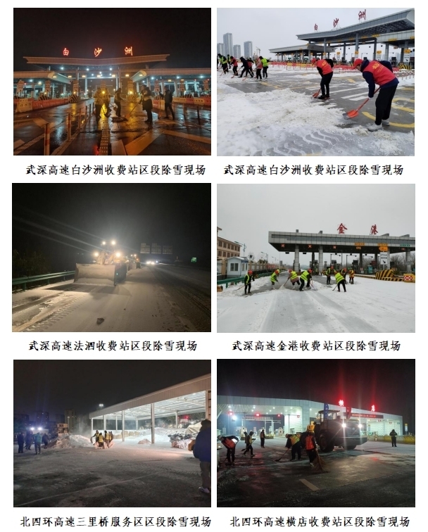 2月21日深夜,在武深高速白沙洲收费站区段除雪现场,寒风中,大家不畏艰难,有序组成了一支支清雪队伍,手持扫帚、铁锨、雪铲等工具迅速投入工作,默契配合。