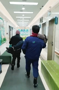 胡念抱老人就医。 (新长江滨江花园小区物业供图)