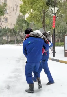 胡经理赶忙招呼员工们上前帮忙。工程部师傅胡念和一位同事立即放下手中的铁锹,上前抱起老人,一路小心快行,把老人送到了小区外的徐家棚街社区卫生服务中心。