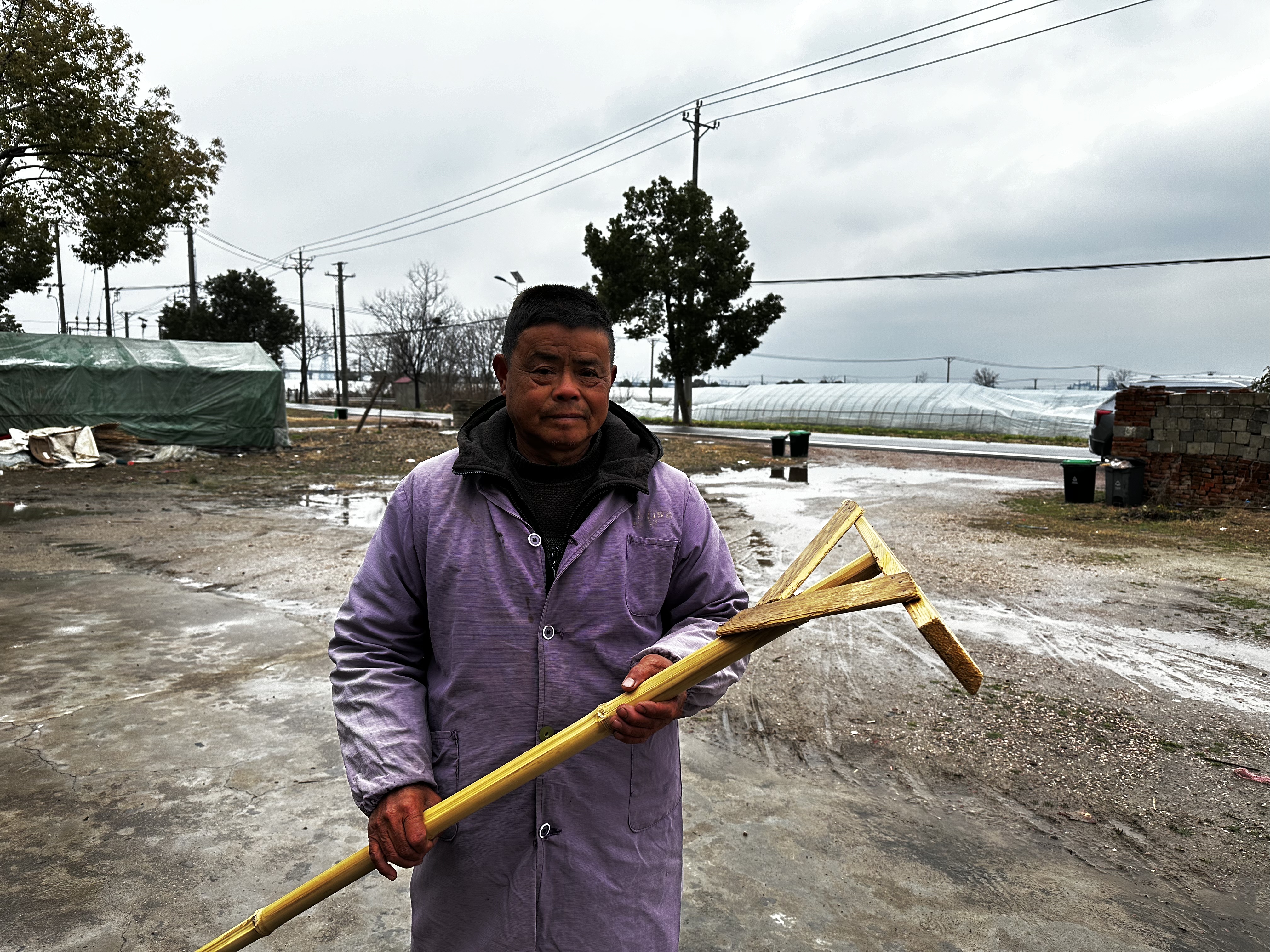春节前的大雪,尹其豹和老伴三天三夜轮流上阵,用这些自制工具保住了大棚。