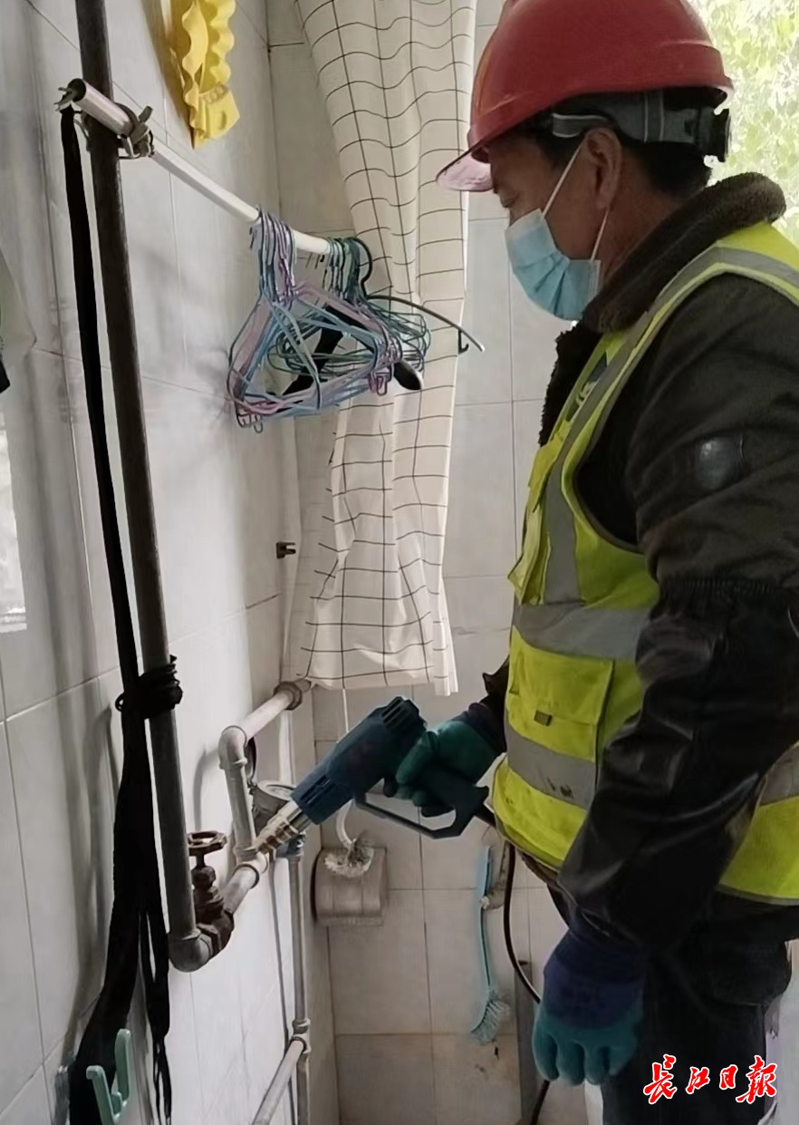 长江日报大武汉客户端2月23日讯(记者杨丝涵 通讯员秦月)“大雪天路不好走,多亏你们来得及时,帮助我们解决管道结冰问题,真是太感谢了。”22日上午11时,家住台北二村51号401室的包先生向武汉市水务集团汉口供水部维修员杨恩强一再感谢。杨恩强告知包先生,可以拿些旧衣服或者毛巾包扎一下管道,如果管道再结冰,就拿吹风机给水管加热。