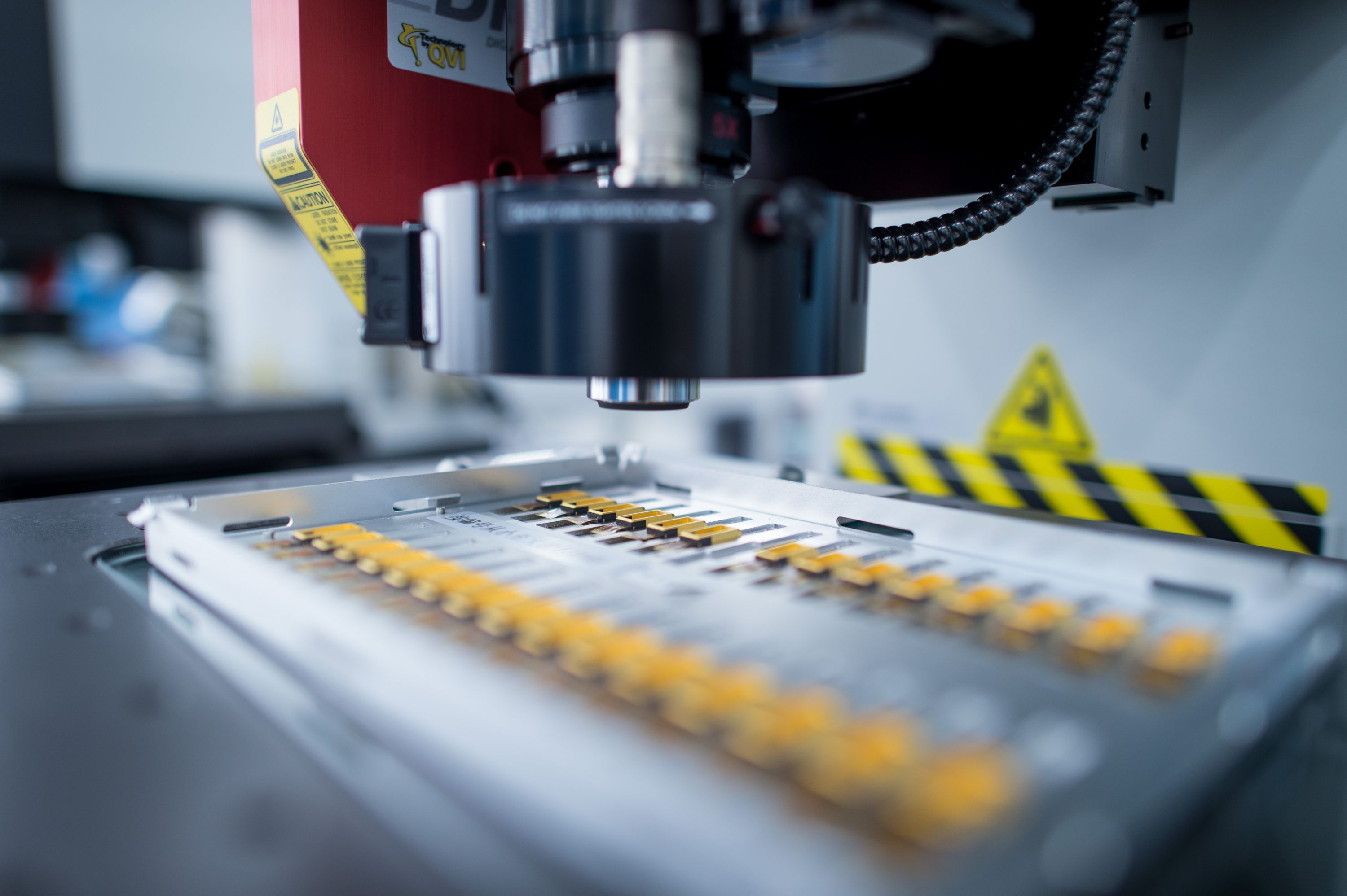 华工激光技术人员在测试载板成品缺陷激光标识设备。长江日报记者周超 摄