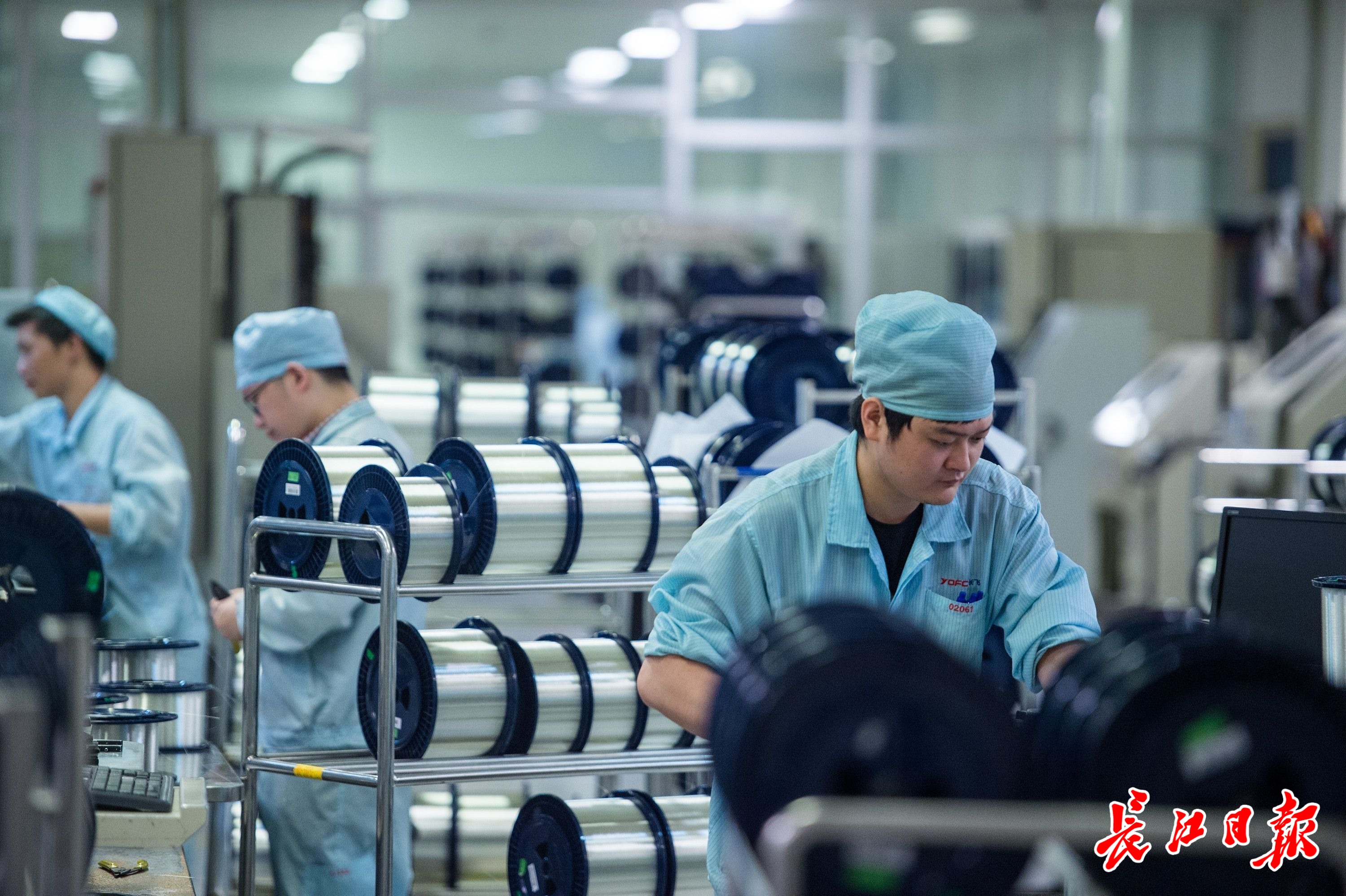 在长飞光纤光缆有限公司的生产车间内,工人们生产作业。 长江日报记者任勇 摄