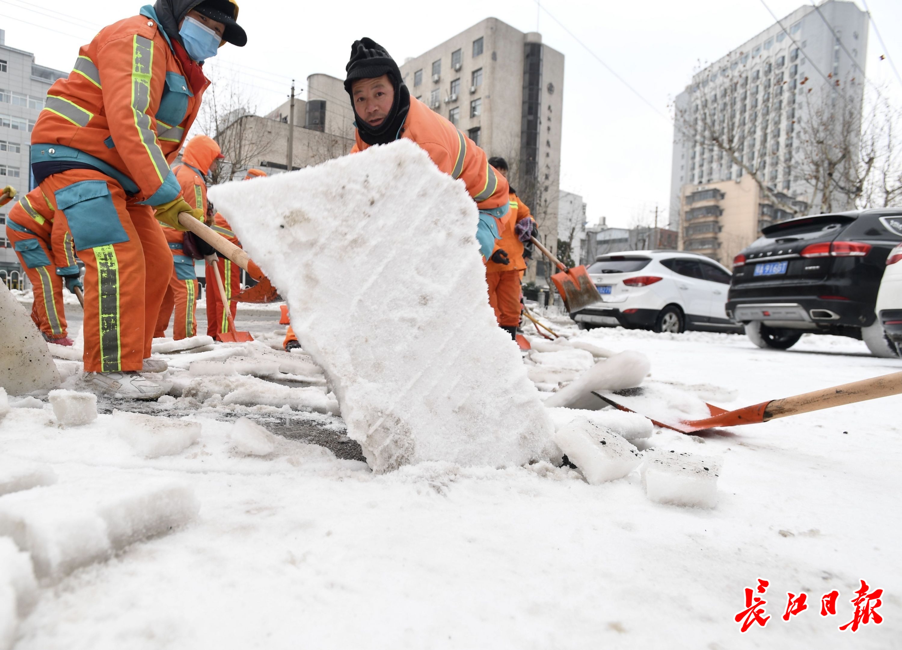 集中攻坚重点路段,方便市民出行 ©原创 2024-02-23 10:37 0 长江日报大武汉客户端2月23日讯 2月23日9时20分,黄孝河路竹叶山公交站旁,马路和街道上的积雪成了厚厚的冰壳,踩在上面咯吱作响,江岸环卫重装突击队队员们合力铲冰,方便市民出行;9时,黄埔大街公交站台,队员们配合铲雪车作业,在清理后的路面及公交站台撒盐防冻,方便市民出行。(长江日报记者周超 摄影报道) 【编辑:王戎飞】 点击下图查看寒潮应对“一本通” ↓↓↓