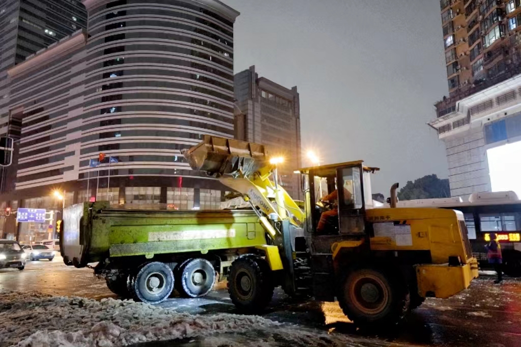 22日晚,地铁集团出动铲车、渣土车清运积雪。通讯员供图