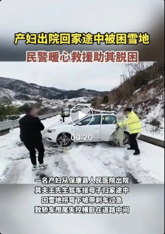 产妇出院回家途中被困雪地