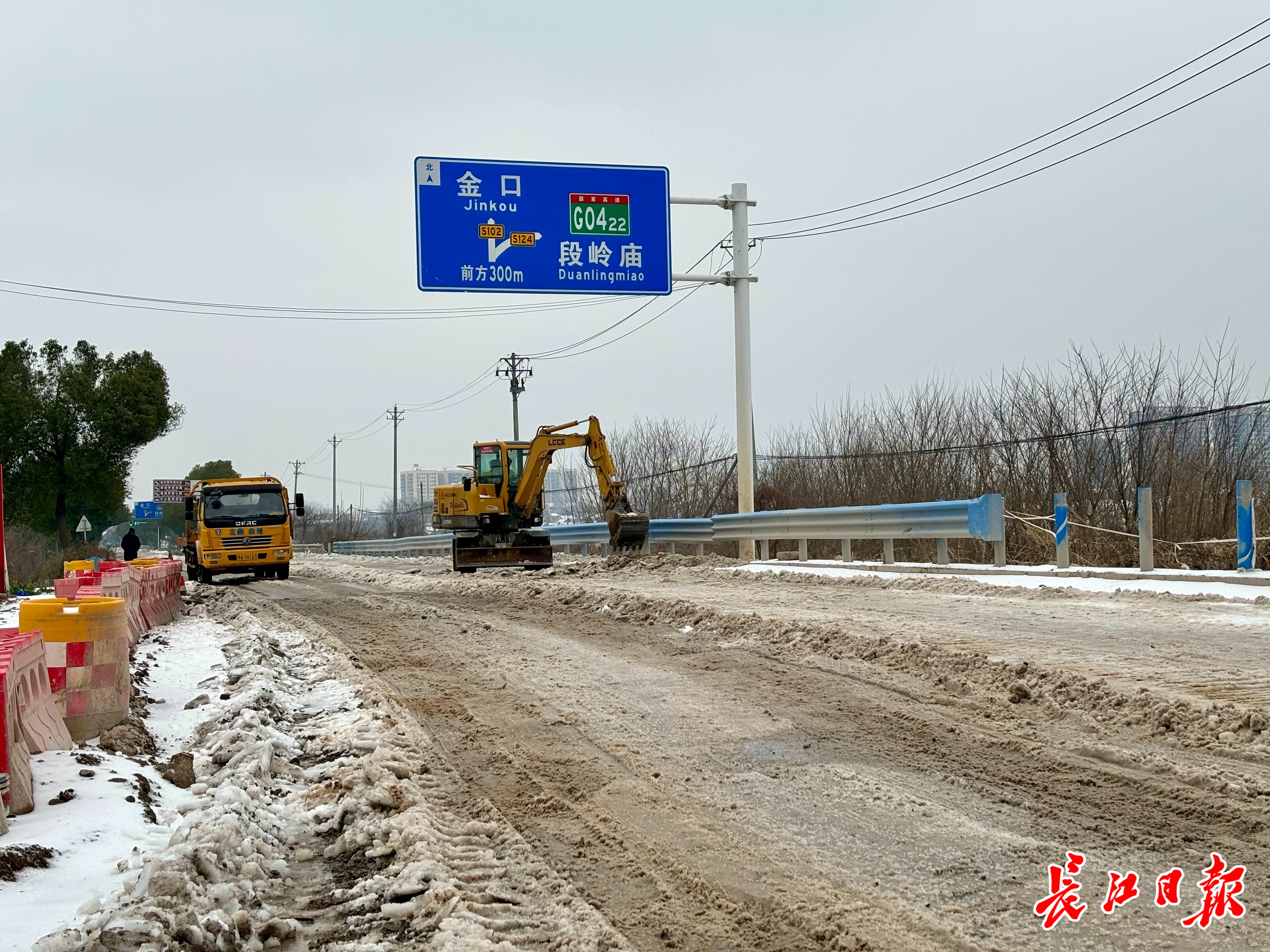 当天,江夏区交通运输局调配的3台铲车早已开上102省道,20余名养护工人全部就位,在这条运菜路上连续施撒融雪剂和除雪作业。