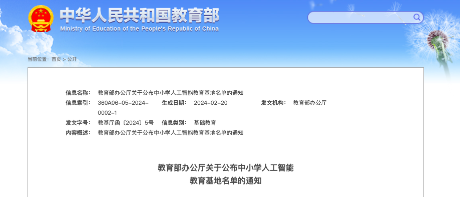 据了解,此次遴选中小学人工智能教育基地旨在通过基地试点,进一步探索人工智能教育的新理念、新模式和新方案,形成可推广的优秀案例和先进经验,推动中小学人工智能教育深入开展。经各省级教育行政部门遴选推荐、教育部集中公示等环节,最终确定了184个中小学人工智能教育基地。