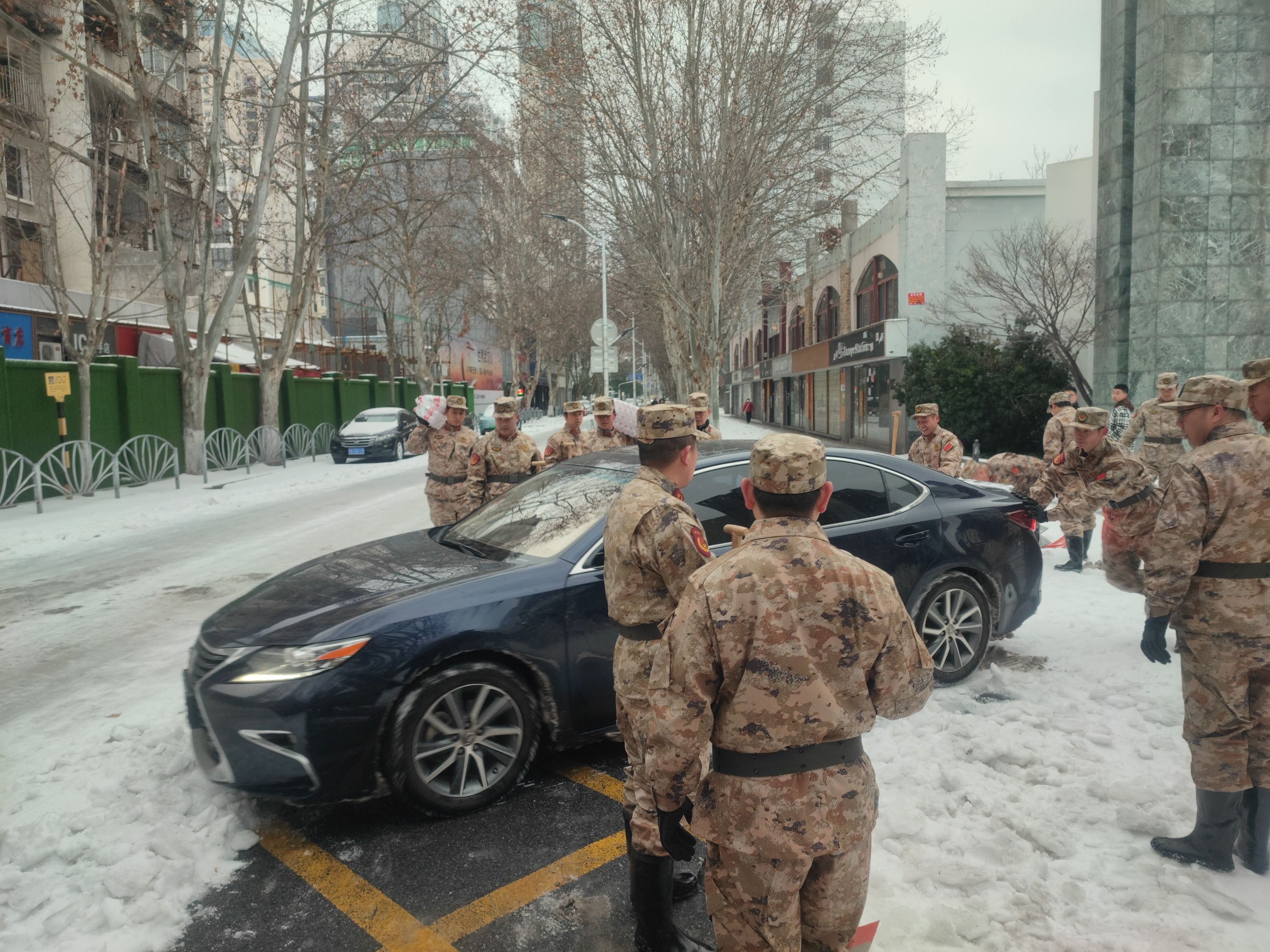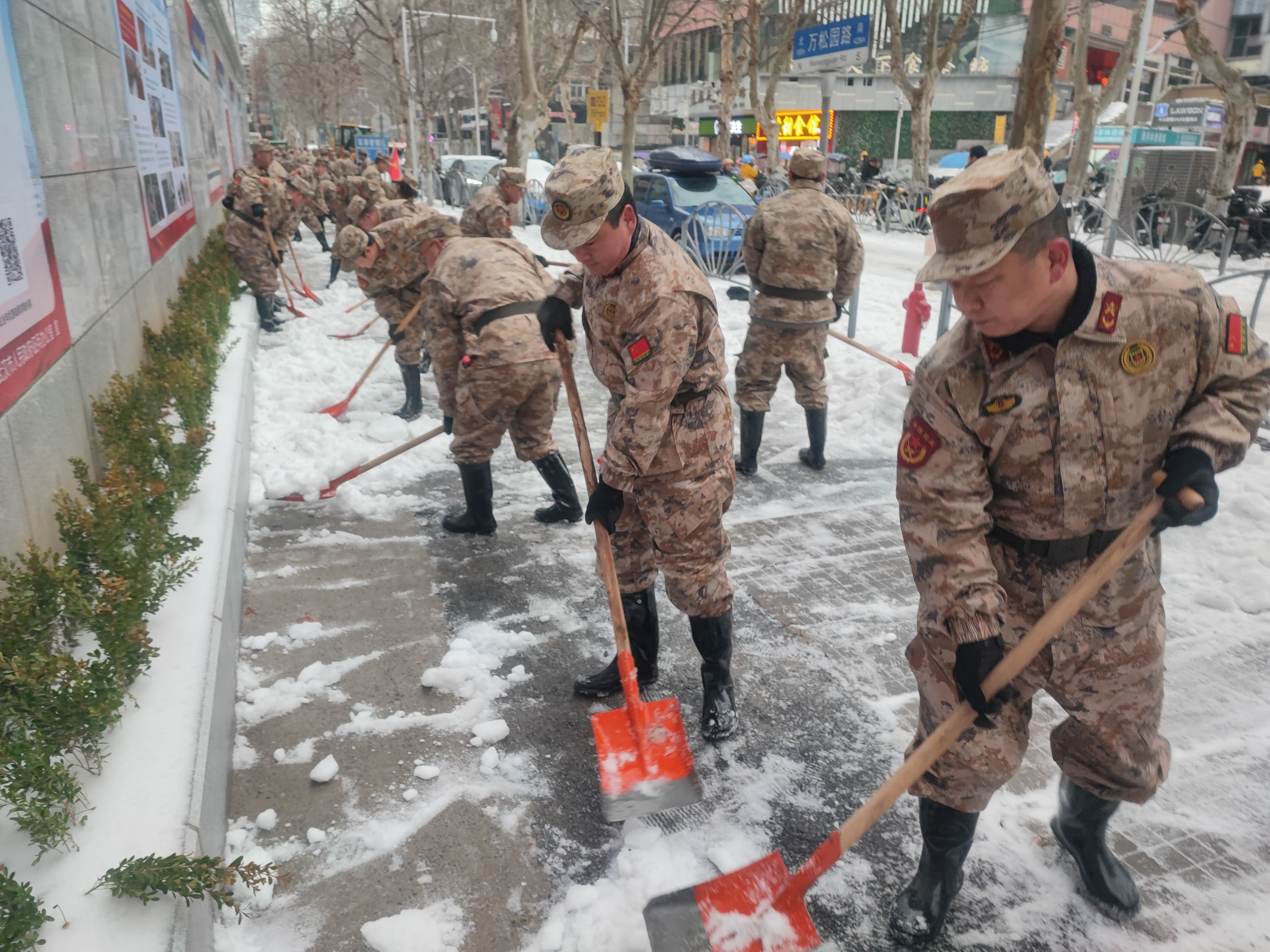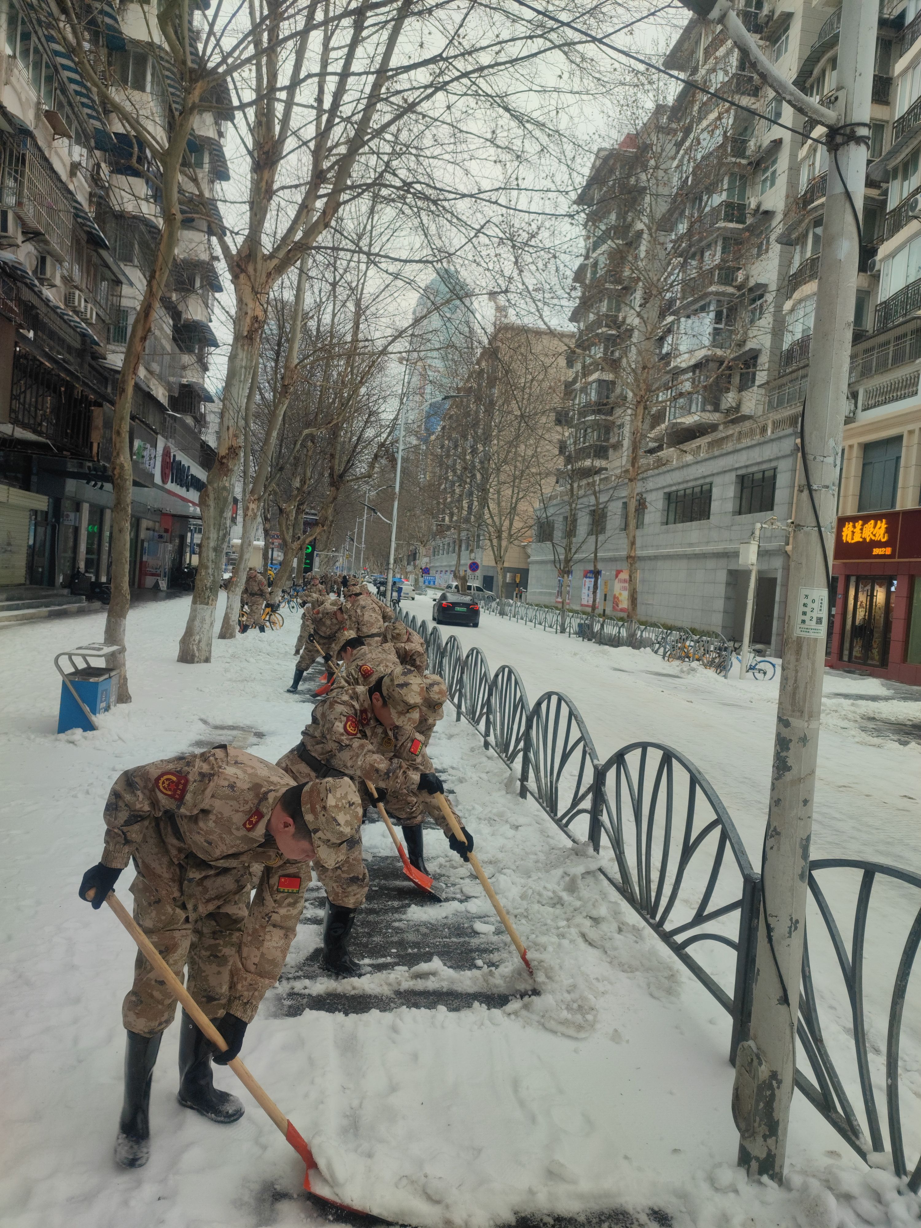 面对严寒,武港集团民兵齐心协力、斗志高昂。他们充分发扬“敢打硬仗、能打胜仗”的精神,在积雪凝冻严重的路段清扫积雪、撒布工业盐并引导车辆行人有序通行。经过连续两日奋战,万松园路、万松园横路、青年路部分人行道被清扫干净,道路恢复畅通,周边居民正常的出行需求得到保障。(记者汪文汉 通讯员纪长鸣 王鹏 摄影报道)