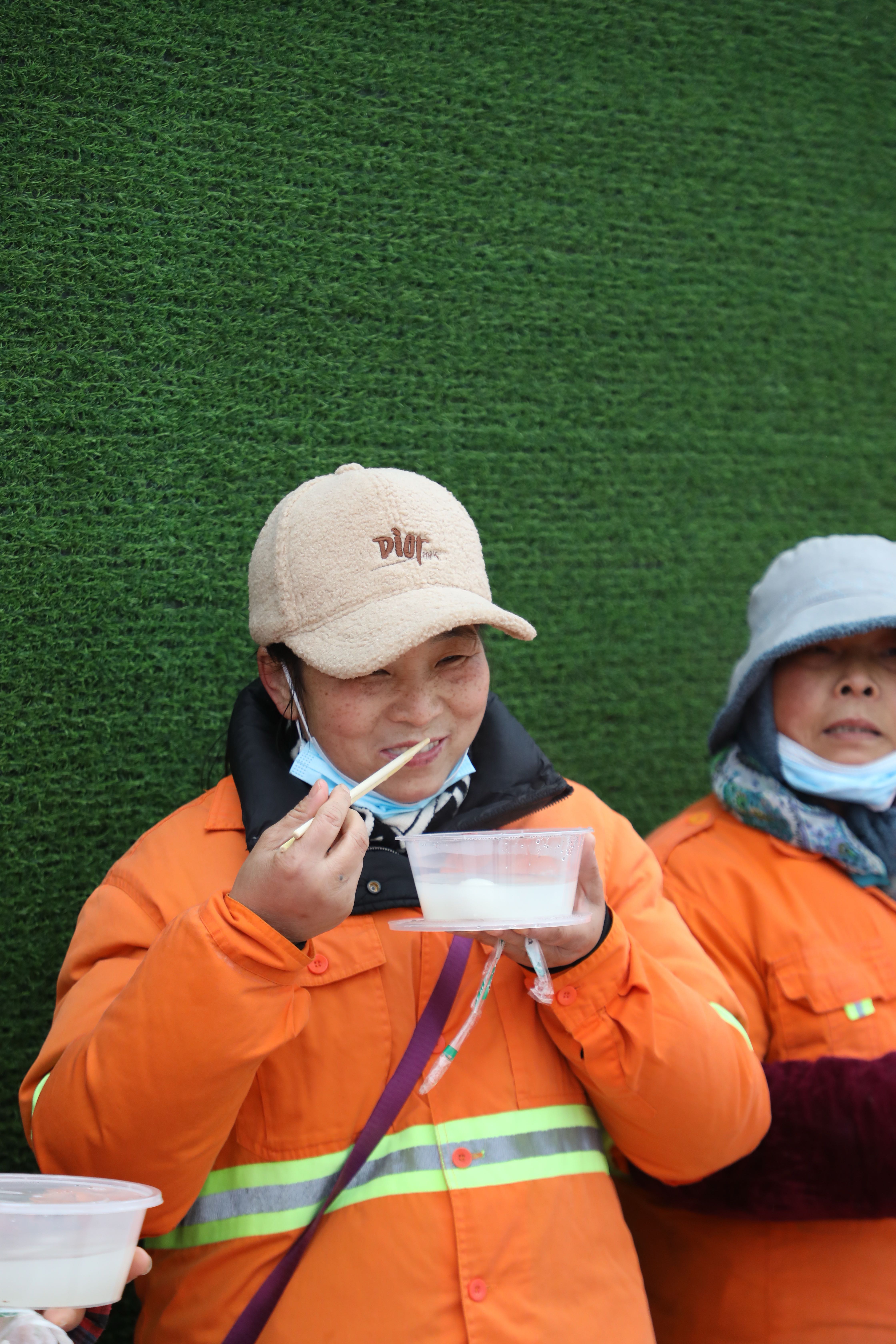 元宵节早上,环卫工人吃上热乎乎的汤圆。