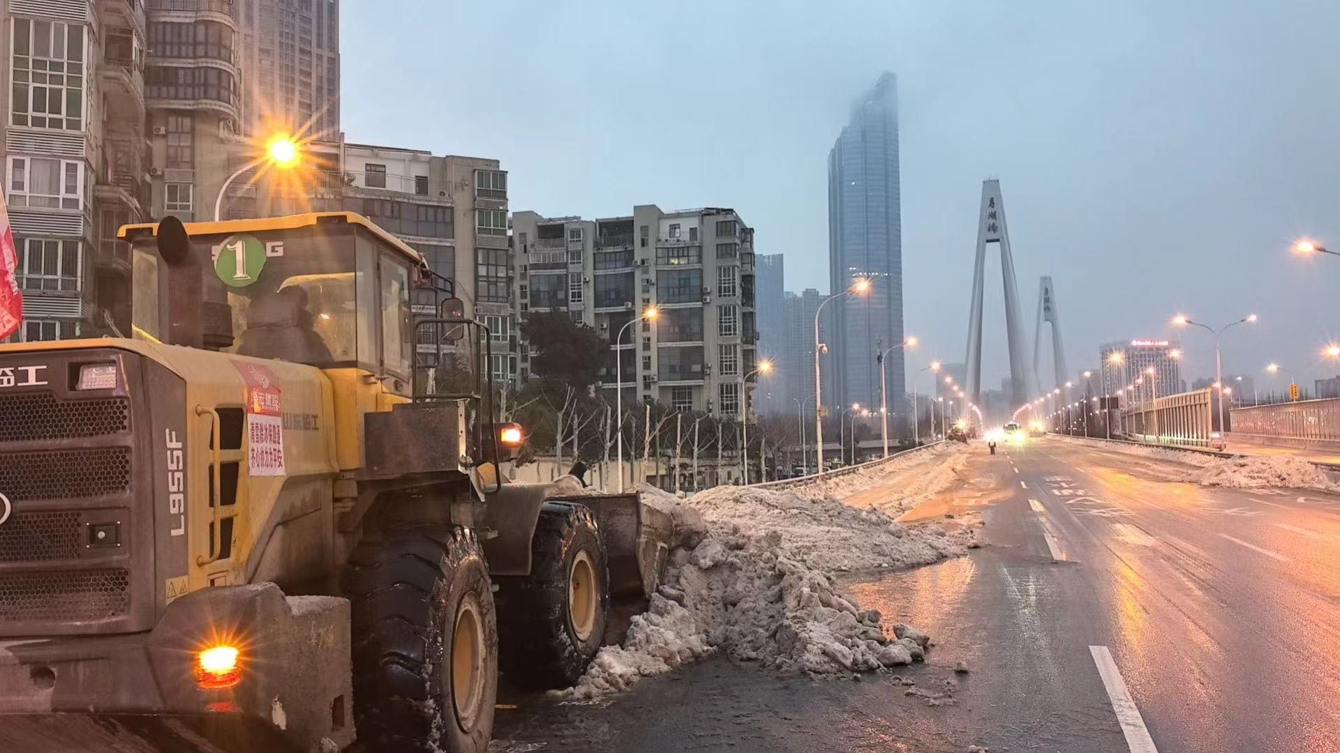 汉阳连夜持续铲除路边积雪。