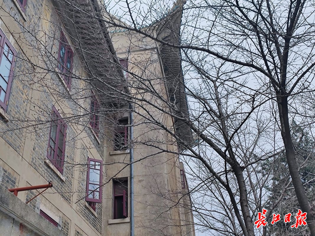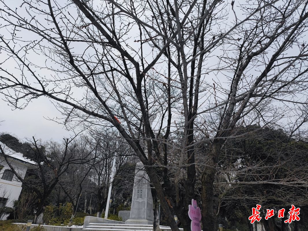 武汉大学鲲鹏广场,樱花树还未出现开花迹象。记者汪洋 摄