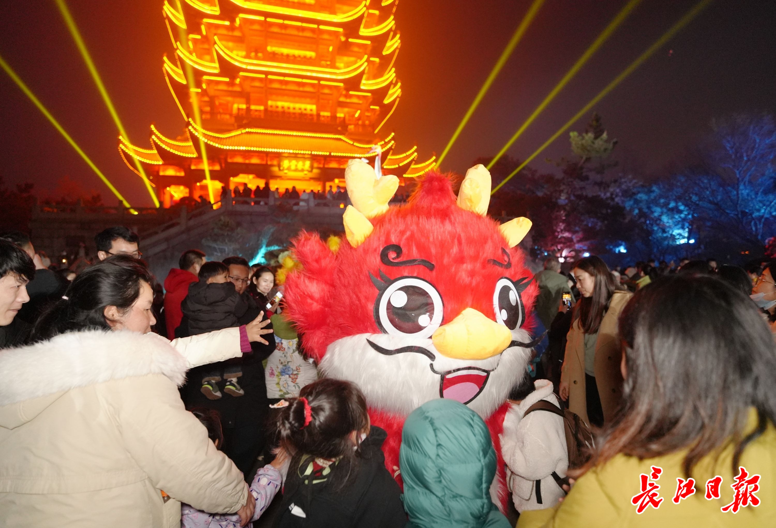 可爱的龙年吉祥物一出场便被小朋友包围。记者何晓刚 摄