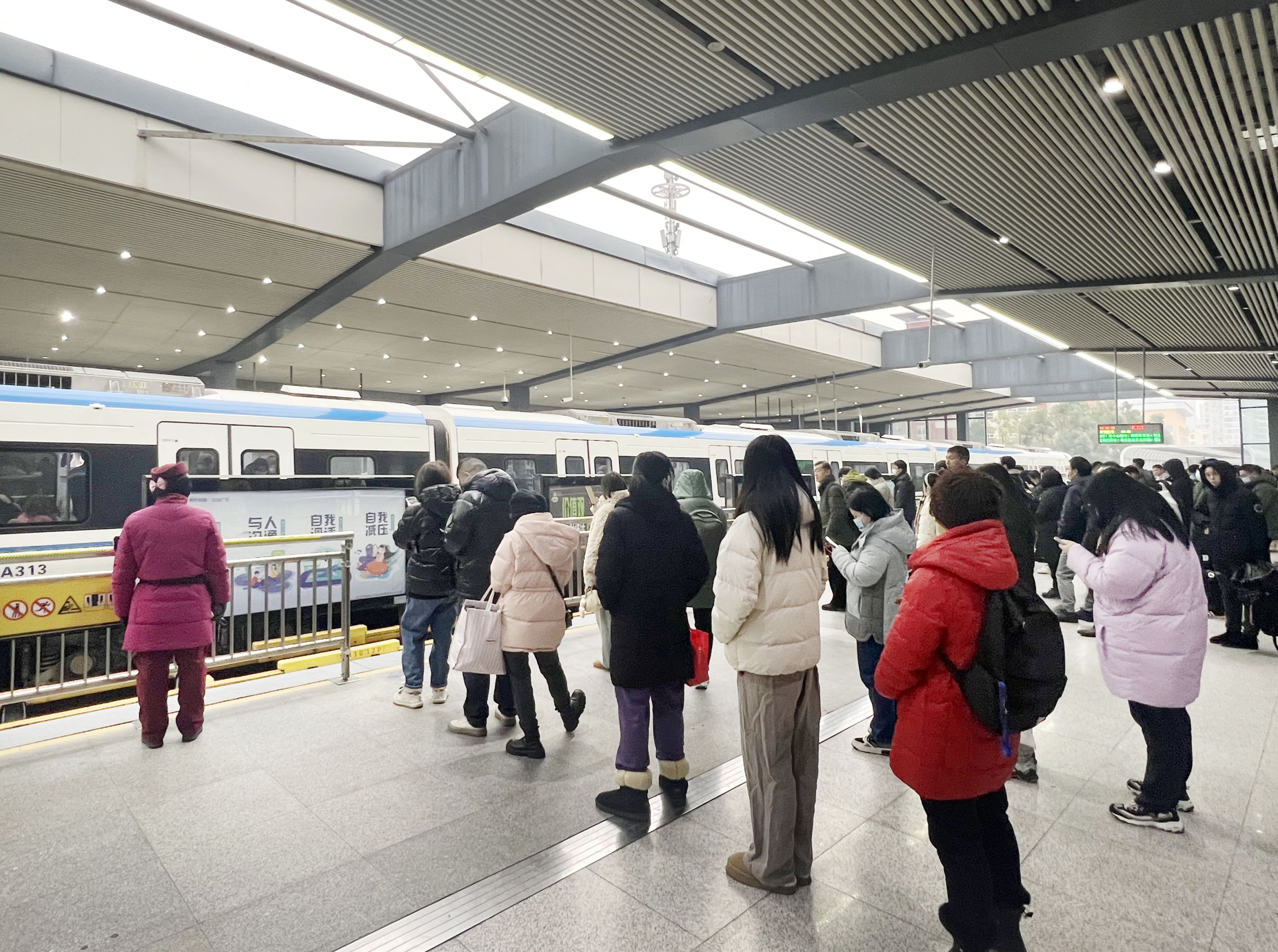 长江日报大武汉客户端2月26日讯 2月26日是开学第一天,当日武汉地铁3号线行车间隔首次跑进3分钟。早高峰时段,地铁全线网运营正常,所有乘客有序进行,快速通行。