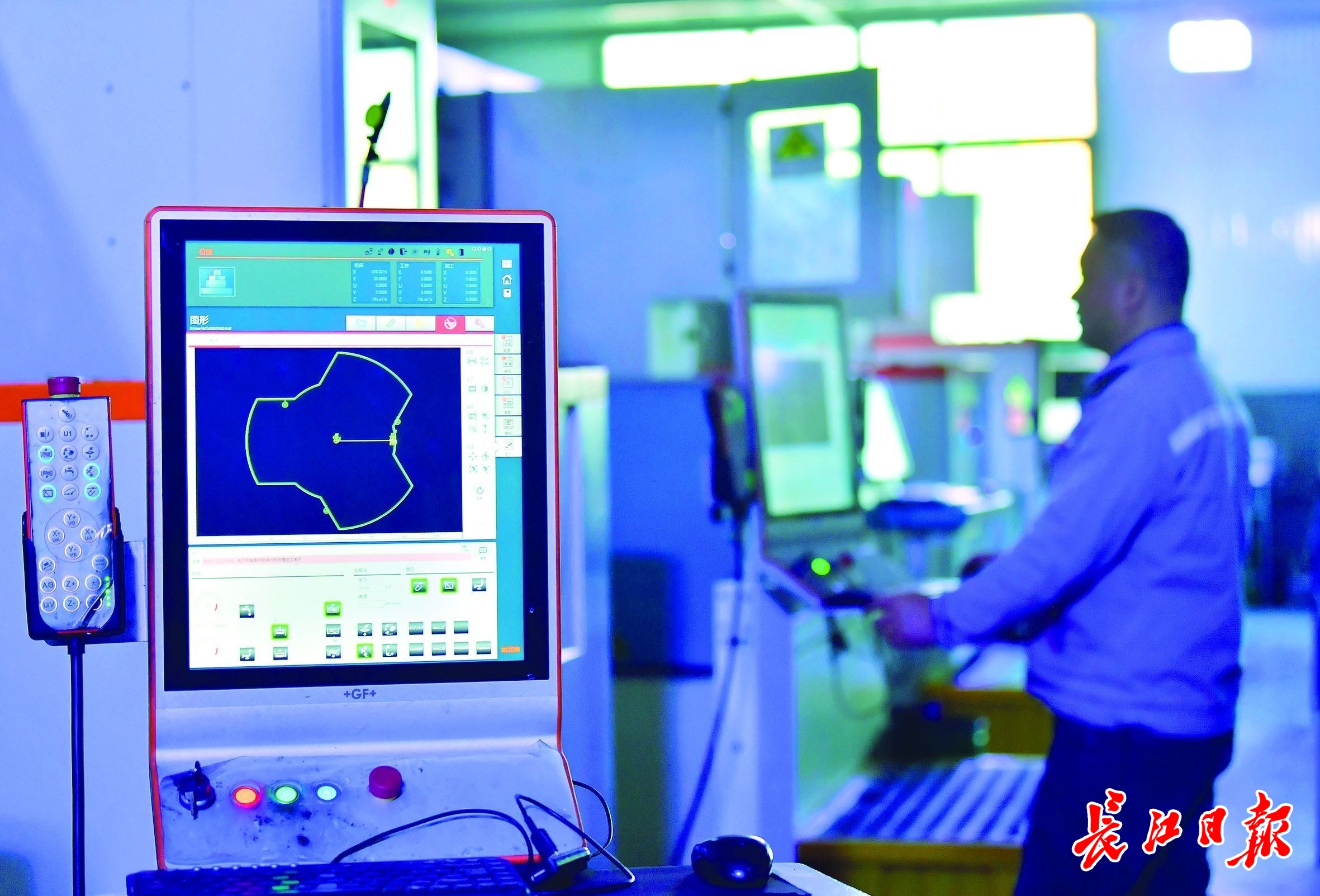 位于长江新区智能制造产业园区的武汉华夏精冲技术有限公司。其智能化厂房内,各种不同型号的精冲设备正在对金属钢板进行一次性冲压成形。长江日报记者刘斌 摄